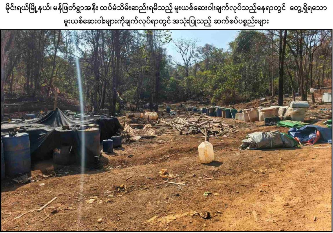 မြန်မာနိုင်ငံအနေဖြင့် မူးယစ်ဆေးဝါးတိုက်ဖျက်ရေးလုပ်ငန်းစဉ်များကို အမျိုးသားရေးတာဝန်တစ်ရပ်အဖြစ်ခံယူ၍ နိုင်ငံတစ်ဝန်းမူးယစ်ဆေးဝါးထုတ်လုပ်မှုနှင့် တရားမဝင်ရောင်းဝယ်မှု တားဆီးကာကွယ်နှိမ်နင်းရေးလုပ်ငန်းများကို အင်တိုက်အားတိုက် စဉ်ဆက်မပြတ်ဆောင်ရွက်လျက်ရှိရာ ၂၀၂၆ ခုနှစ်၊ ဇန်နဝါရီ ၉ ရက်၊ ၁၀ ရက်နှင့် ၁၁ ရက်တို့တွင် ရှမ်းပြည်နယ် (မြောက်ပိုင်း)၊ သီပေါမြို့နယ်နှင့် မိုင်းရယ်မြို့နယ်များအတွင်း အွန်လိုင်းလိမ်လည်လောင်းကစားမှုပြုလုပ်ရာတွင် အသုံးပြုသည့်ပစ္စည်းများနှင့် မူးယစ်ဆေးဝါးချက်လုပ်ရာတွင် အသုံးပြုသည့် ပစ္စည်းကိရိယာအမြောက်အများကို သိမ်းဆည်းရမိခဲ့သည့်သတင်းအား ဇန်နဝါရီ ၁၅ ရက်နေ့တွင်လည်းကောင်း၊ မိုင်းရယ်မြို့၏ အနောက်မြောက်ဘက် ၃၄ ကီလိုမီတာအကွာ၊ နားလင်းကျေးရွာ၏ အရှေ့မြောက်ဘက် ၁၄ ကီလိုမီတာခန့်အကွာတွင် မူးယစ်ဆေးဝါးချက်လုပ်သည့် နေရာများကို ထပ်မံဖမ်းဆီးရမိခဲ့သည့် သတင်းအား ဇန်နဝါရီ ၁၅ ရက်နေ့တွင်လည်းကောင်း အသီးသီးထုတ်ပြန်ပြီးဖြစ်သည်။