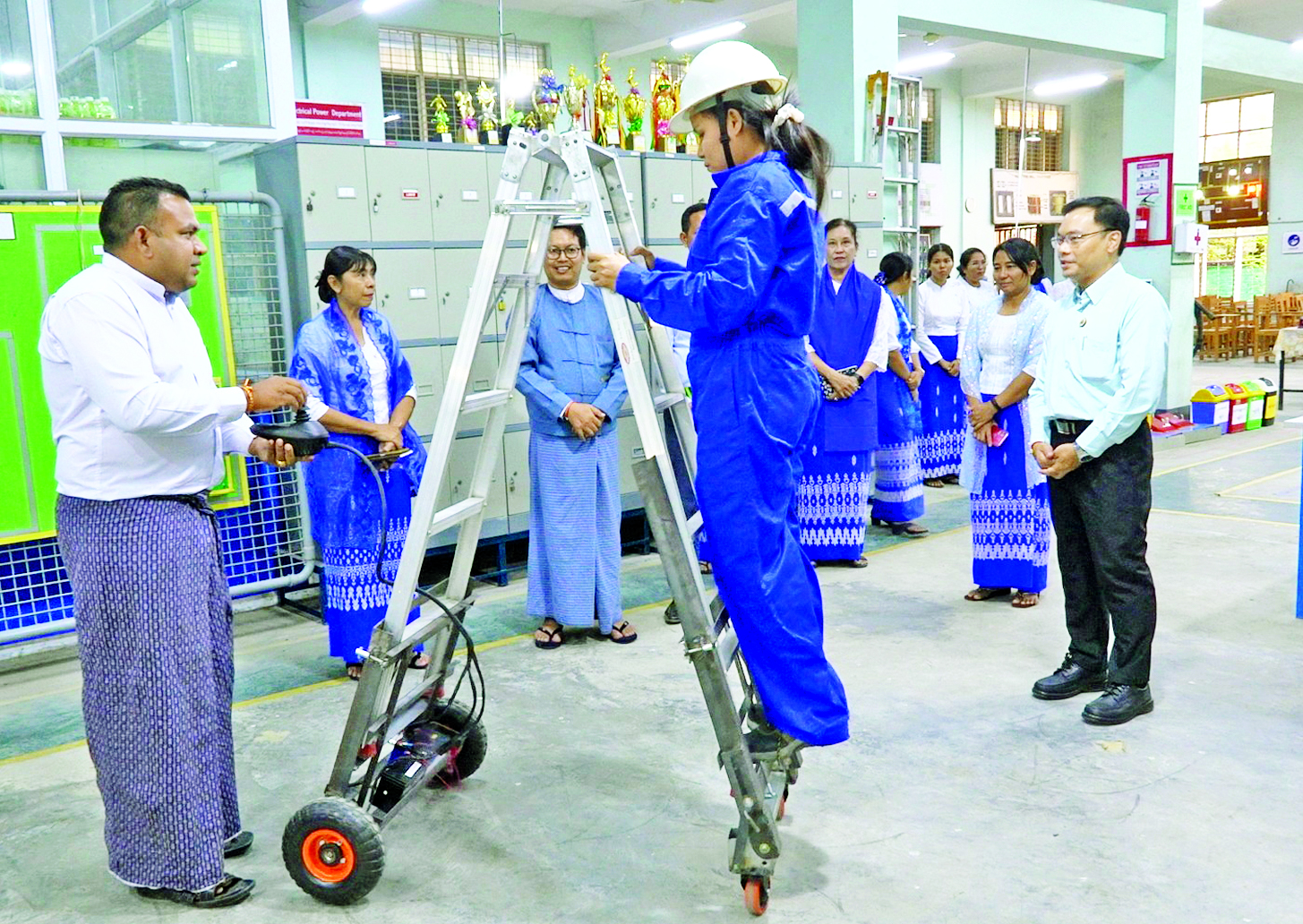 ယင်းနောက် ဒုတိယဝန်ကြီးသည် အစိုးရစက်မှုလက်မှုသိပ္ပံ (ရွှေပြည်သာ) ၌ ဝန်ထမ်းများနှင့် ရင်းရင်းနှီးနှီးတွေ့ဆုံပြီး ဒေသတွင်းလူငယ်များ၏ အလုပ်အကိုင်အခွင့်အလမ်းများ ဖော်ဆောင်နိုင်မှုမှသည် ပြည်သူလူထု၏ လူမှုစီးပွားဘဝဖွံ့ဖြိုးရေးတိုက်ရိုက်ထိရောက်မြန်ဆန်စွာ အကျိုးပြုနိုင်သည့် အင်ဂျင်နီယာနည်းပညာဆိုင်ရာ အသက်မွေးဝမ်းကျောင်းသင်တန်းများကို စံနှုန်းများနှင့်အညီ စဉ်ဆက်မပြတ် ဖွင့်လှစ်ဆောင်ရွက်သွားရန် တိုက်တွန်းမှာကြားကာ စာကြည့်တိုက်အတွက် သုတ၊ ရသစာအုပ်များကို ပေးအပ်လှူဒါန်းသည်။