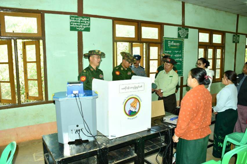 ယင်းနောက် တိုင်းမှူးနှင့် တာဝန်ရှိသူများက အဆိုပါကျောင်းရှိ ပုလဲခန်းမ၊ မဲရုံအမှတ်(၁)တွင် ထားရှိသည့်မြန်မာအီလက်ထရောနစ် မဲပေးစက်(MEVM)များအား သွားရောက်ကြည့်ရှုစစ်ဆေးပြီး တာဝန်ရှိသူများနှင့်တွေ့ဆုံကာ လိုအပ်သည်များ ပေါင်းစပ်ညှိနှိုင်းဆောင်ရွက်ပေးခဲ့ကြကြောင်း သတင်းရရှိသည်။