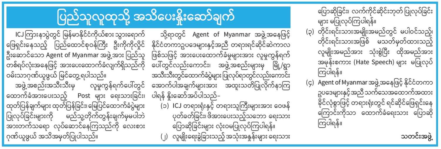 ပြည်သူလူထုသို့ အသိပေးနှိုးဆော်ချက်