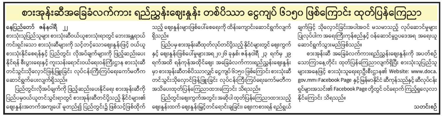 ဝန်ကြီးဌာန ကြေညာချက်များ