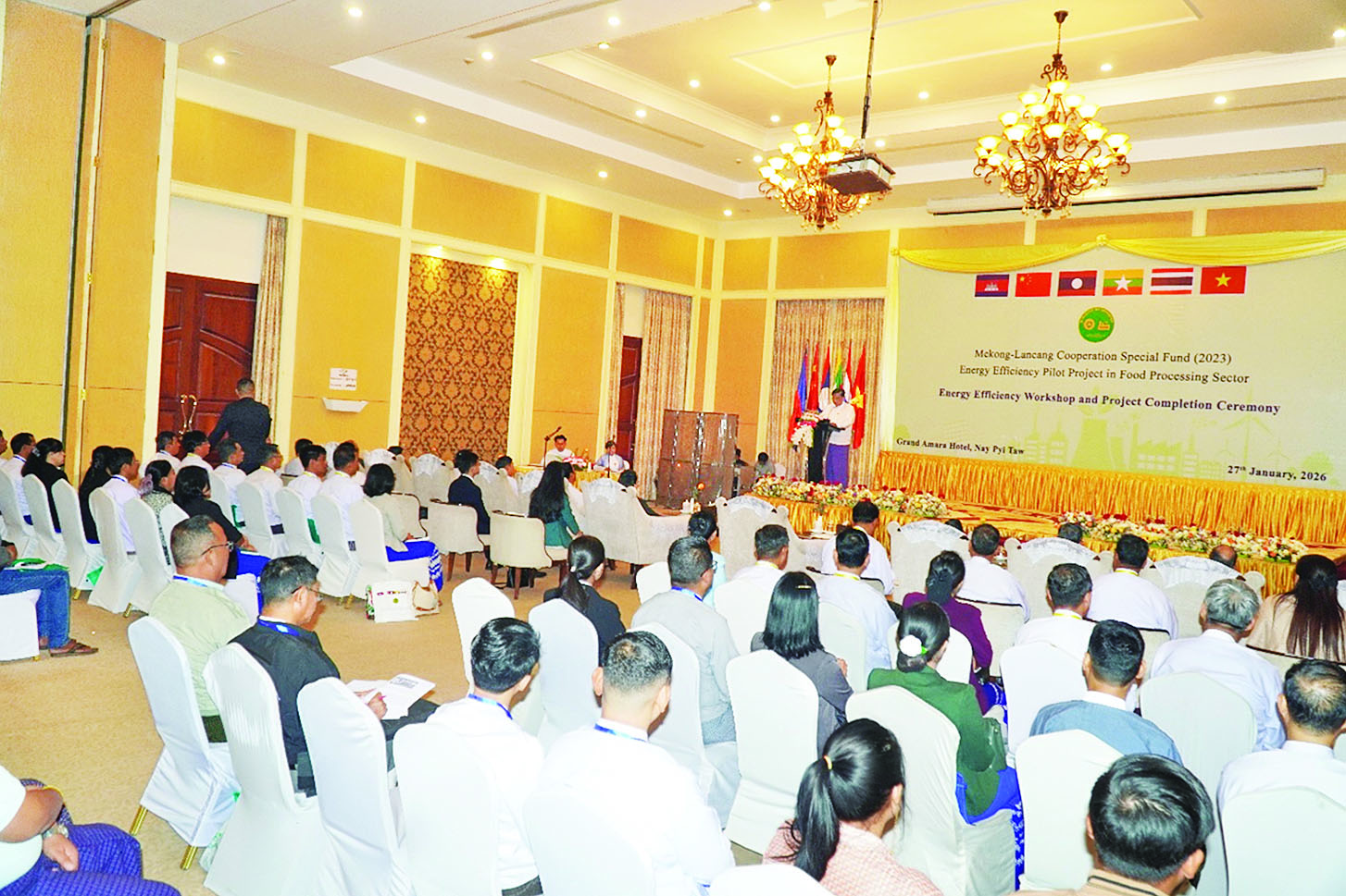 မဲခေါင်-လန်ချန်းပူးပေါင်းဆောင်ရွက်မှုအစီအစဉ် ၂၀၂၃ ဖြင့် စားသောက်ကုန်လုပ်ငန်းကဏ္ဍတွင် စွမ်းအင်အကျိုးရှိစွာသုံးစွဲရေး ရှေ့ပြေးစီမံကိန်းစွမ်းအင်အကျိုးရှိ ထိရောက်စွာသုံးစွဲရေးဆိုင်ရာ အလုပ်ရုံဆွေးနွေးပွဲနှင့် စီမံကိန်းအောင်မြင်ပြီးမြောက်ခြင်းအခမ်းအနားကို ယနေ့နံနက်ပိုင်းတွင် နေပြည်တော်ရှိ Grand Amara Hotel ၌ ကျင်းပသည်။