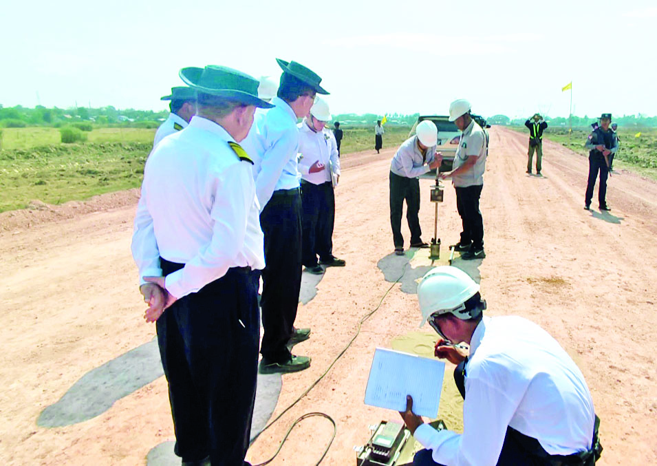 ထို့နောက် တောင်ငူမြို့ရှောင်ရထားလမ်း တာပေါင်မြေကြီးလုပ်ငန်းနှင့် တံတားလုပ်ငန်းဆောင်ရွက်နေမှုအခြေအနေကို ကြည့်ရှုစစ်ဆေးပြီး တာပေါင်မြေကြီးလုပ်ငန်း ဆောင်ရွက်ရာတွင် အပေါ်ယံမြေလွှာကို ကုန်စင်အောင်ဖယ်ရှား၍ Selected Borrow Soil ကို သိပ်သည်းမှုရရှိအောင် အလွှာလိုက်ဖိကြိတ်၍ Compaction ကောင်းမွန်အောင် ဆောင်ရွက်ပြီး သတ်မှတ်ထားသည့် အရည်အသွေးရရှိအောင် Quality Control ဆောင်ရွက်ရန်၊ ရထားလမ်းဘေး ရေနုတ်မြောင်းများ တစ်ပါတည်း တူးဖော်နိုင်ရေး ဆောင်ရွက်ရန်နှင့် ရထားလမ်းအား သတ်မှတ်ထားသည့် ကာလအတွင်း အချိန်မီပြီးစီး အောင် အလေးထားဆောင်ရွက်ရန် ဆွေးနွေးမှာကြားသည်။