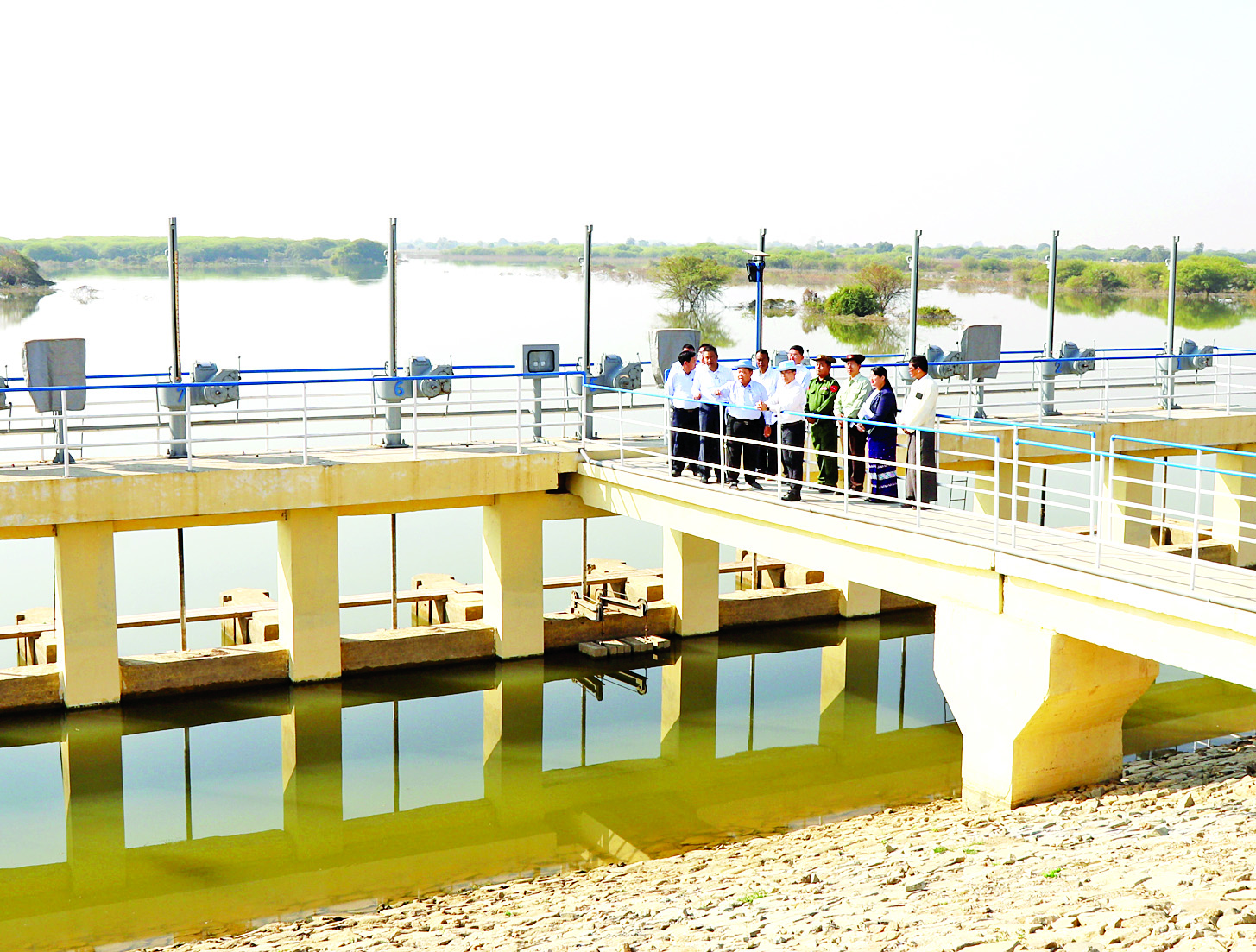ထို့နောက် ပြည်ထောင်စုဝန်ကြီးသည် စမုံရေထိန်းတမံအနီးရှိ အမြင့်ပိုင်းစိုက်ပျိုးမြေများ ရေရရှိရေးအတွက် ဆောင်ရွက်ထားရှိသော ဆိုလာစနစ် ရေတင်လုပ်ငန်းကို ကြည့်ရှုစစ်ဆေးပြီး တာဝန်ရှိသူများနှင့်ဒေသခံတောင်သူများအား တွေ့ဆုံ၍ ဆည်ရေသောက် ဧရိယာအတွင်း စပါးသီးနှံအခြေခံဆီထွက်သီးနှံနှင့် ဝင်ငွေရသီးနှံများ သီးထပ်စိုက်ပျိုးရေး၊ စိုက်ပျိုးထုတ်လုပ်မှုဆိုင်ရာ တောင်သူအခက်အခဲများကို သက်ဆိုင်ရာဌာနပညာရှင်များက နည်းလမ်းရှာဖွေကူညီပေးနိုင်ရေး ဆွေးနွေးမှာကြား သည်။