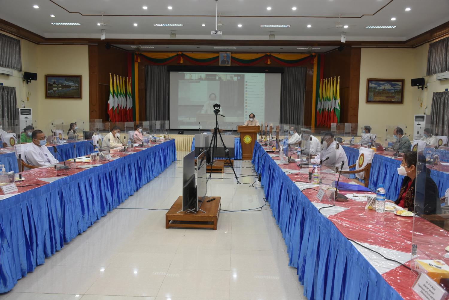 ယင်းနောက် မြန်မာနိုင်ငံကျန်းမာရေး ကဏ္ဍပေါင်းစပ် ညှိနှိုင်းရေးကော်မတီ ပြင်ဆင်ဖွဲ့ စည်းရေးနှင့် ကော်မတီမှ ရှေ့ဆက်ဆောင်ရွက်မည့် လုပ်ငန်းများနှင့် ပတ်သက်၍လည်း ကောင်း၊ ခေါင်းဆောင်မှု၊ စီမံခန့်ခွဲမှုနှင့် ပူးပေါင်းပံ့ပိုးဆောင်ရွက်မှု အစီအစဉ်ကိုလည်းကောင်း၊ မြန်မာနိုင်ငံတွင် ကိုဗစ်-၁၉ ကာကွယ်၊ ထိန်းချုပ်၊ ကုသရေးလုပ်ငန်းများ ဆောင်ရွက်နေမှုများနှင့် ပတ်သက်၍လည်းကောင်း တင်ပြခဲ့ကြပြီး တက်ရောက်လာကြသူများက ဆွေးနွေး အကြံပြုကြသည်။
