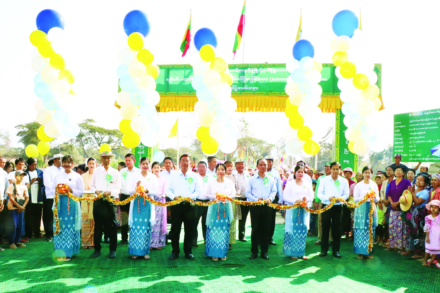 (၇၉) နှစ်မြောက် ပြည်ထောင်စုနေ့ကို ကြိုဆိုဂုဏ်ပြုသောအားဖြင့် သမဝါယမနှင့် ကျေးလက်ဖွံ့ဖြိုးရေးဝန်ကြီးဌာန၊ ကျေးလက်လမ်းဖွံ့ဖြိုးရေးဦးစီးဌာနက ၂၀၂၅-၂၀၂၆ ဘဏ္ဍာနှစ် ပြည်ထောင်စုငွေလုံးငွေရင်း ခွင့်ပြုရန်ပုံငွေဖြင့် တည်ဆောက်ခဲ့သည့် နေပြည်တော်ကောင်စီနယ်မြေ ဥတ္တရသီရိခရိုင် တပ်ကုန်းမြို့နယ် အုန်းပင်-တောင်ပို့သာ ကျေးရွာ ချင်းဆက်လမ်းပေါ်ရှိ ရေနိမ့်တံတား ပေ ၃၀၀ ဖွင့်ပွဲကို ယနေ့နံနက်ပိုင်းက အဆိုပါတံတား တည်နေရာ၌ကျင်းပရာ ဒုတိယဝန်ကြီး ဦးသိုက်စိုး၊ နေပြည်တော်ကောင်စီဝင် ဦးဇေယျာလင်း၊ အမြဲတမ်းအတွင်းဝန်၊ ညွှန်ကြားရေးမှူးချုပ်များ၊ တာဝန်ရှိသူများနှင့် ကျေးရွာသူကျေးရွာသားများ တက်ရောက်သည်။