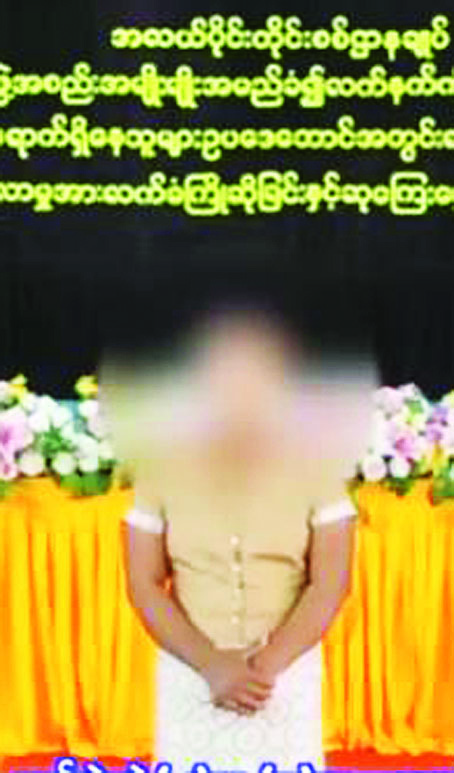 ၂။ သင်တန်းတက်နေစဉ် ကာလအတွင်းမှာပဲ သင်တန်းဆရာတွေရဲ့ ခွဲခြားဆက်ဆံတာတွေကိုလည်း ခံခဲ့ရပါတယ်။ အဲဒီအထဲမှာလည်း ထွက်ပြေးဖို့တော့ကြိုးစားခဲ့ပါတယ်။ ဒါပေမယ့် ကိုယ့်အရှေ့မှာ ပြေးတဲ့သူတွေကလည်းရှိတယ်။ ဒါပေမယ့် သူတို့လည်းပြန်မိတယ်။ ပြန်မိတော့ကြိုးတွေနဲ့တုပ်ပြီး သေလောက်အောင် ရိုက်နှက်တာတွေလည်း ကိုယ်တိုင်မြင်ခဲ့တွေ့ခဲ့ရပါတယ်။ မြင်တွေ့တော့ ငါလည်းပြေးမယ်ဆိုလို့ရှိရင် သူတို့လိုပဲပြန်မိမယ်ဆိုပြီးတော့ သင်တန်းကို ကြိတ်မှိတ်ပြီးတော့တက်ခဲ့ရပါတယ်။ တာဝန်ထမ်းဆောင်တဲ့ အချိန်မှာလည်း အဲဒီအကြမ်းဖက် ခေါင်းဆောင်တွေရဲ့ ပြည်သူတွေကို နှိပ်စက်မှုတွေ၊ မတရားငွေကြေးကောက်ခံမှုတွေပြီးတော့ ရရှိလာတဲ့ ငွေကြေးတွေကို ပြည်သူတွေအတွက် ပြန်လည် အသုံးပြုတာမရှိဘဲနဲ့ သူတို့ရဲ့ ကိုယ်ကျိုးအတွက် အသုံးပြုတာတွေကိုလည်းမြင်တွေ့ခဲ့ရပါတယ်။ တာဝန်ထမ်းဆောင်နေတဲ့ အချိန်မှာလည်း ကျွန်မအဲဒီအကြမ်းဖက် အဖွဲ့အစည်းက ထွက်ပြေးဖို့ကြိုးစားခဲ့ပါတယ်။ ဒါပေမယ့်လည်းမအောင်မြင်ခဲ့ပါဘူး။ အဲဒီကနေတစ်ဆင့် တကောင်းဘက်ကိုပြောင်းရွှေ့တာဝန်ထမ်းဆောင်ခဲ့ရပါတယ်။ တကောင်းဘက်မှာလည်း အဲဒီလိုပဲ အကြမ်းဖက်ခေါင်းဆောင်တွေရဲ့ ပြည်သူတွေအပေါ် နှိပ်စက်မှုတွေ၊ ငွေကြေးကောက်ခံမှုတွေကိုလည်း အရင်နည်းအတိုင်းပဲ မြင်တွေ့ခဲ့ရပါ တယ်။ အဲဒီမှာပဲ ကျွန်မအနေနဲ့အရဲစွန့်ပြီး မန္တလေးဘက်ကိုထွက်ပြေးလာခဲ့ပါတယ်။ လမ်းမှာလည်း ကိုးရက်လောက် အချိန်ကြာမြင့်ခဲ့ပါတယ်။ ခက်ခက်ခဲခဲကျော်ဖြတ်လာပြီးတော့ တပ်မတော်ထံမှာ အလင်းဝင်ခဲ့ပါတယ်။ တပ်မတော်မှာ အလင်းဝင်တဲ့အခါမှာလည်း ကျွန်မတို့ကို နွေးနွေးထွေးထွေးကြိုဆိုပါတယ်။ တကယ့်မိသားစု အရင်းအချာတွေလိုလည်း ဆက်ဆံပါတယ်။ သူတို့ဟိုမှာ အကြမ်းဖက်အဖွဲ့အစည်းထဲမှာ နေတုန်းကလိုမျိုး သူတို့မှိုင်းသွင်းထားတာတွေရှိပါတယ်။ မင်းတို့တပ်မတော်မှာ အလင်းဝင်မယ်ဆိုလို့ရှိရင် မင်းတို့ကိုသတ်မယ်။ မိန်းကလေးတွေဆိုလို့ရှိရင်လည်း အတင်းအဓမ္မ မုဒိမ်းကျင့်တာတွေရှိမယ်။ မိသားစုတွေကိုလည်း သတ်ဖြတ်တာတွေရှိတယ်ဆိုပြီးတော့ သူတို့မှိုင်းသွင်းထားတာတွေ ရှိပါတယ်။ ဒါပေမယ့် တပ်မတော်ထံမှာအလင်းဝင်တဲ့အခါမှာ အဲဒီလိုမျိုးတွေမရှိပါဘူး။ ကျွန်မတို့ကို နွေးနွေးထွေးထွေးဆက်ဆံပါတယ်။ တောထဲမှာကျန်ခဲ့တဲ့ ကျွန်မရဲ့ သူငယ်ချင်းတွေကိုလည်း အမြန်ဆုံးအမြင်မှန်ရပြီးတော့ တပ်မတော်နဲ့ ပူးပေါင်းဖို့၊ တပ်မတော်ထံအလင်းဝင်ဖို့လည်း ဖိတ်ခေါ်ချင်ပါတယ်။