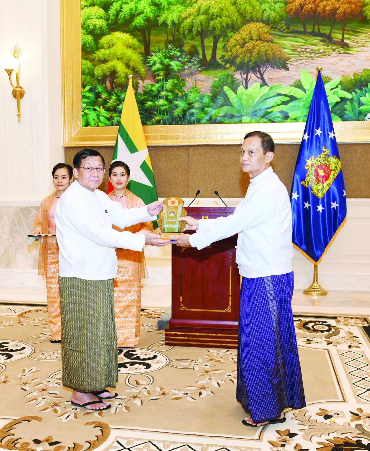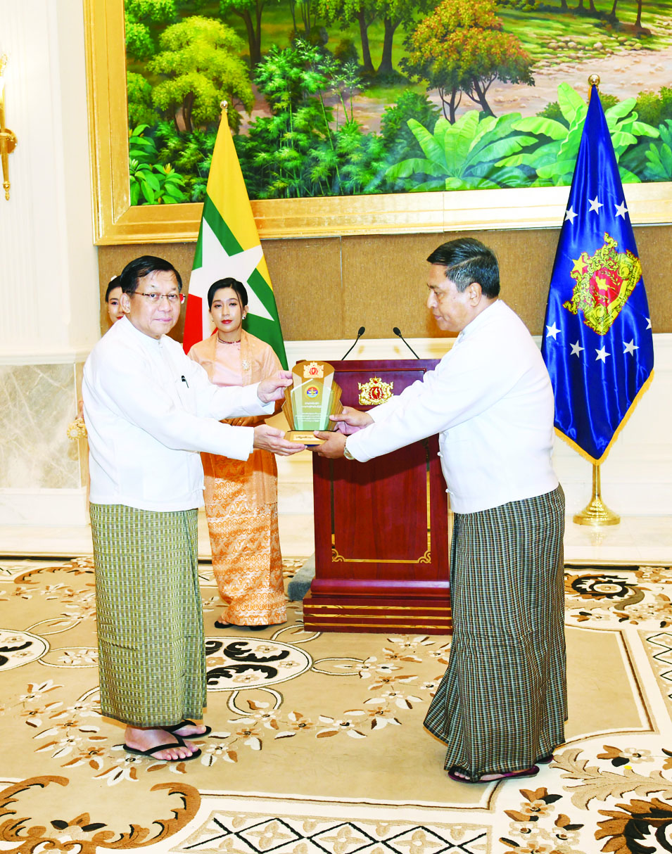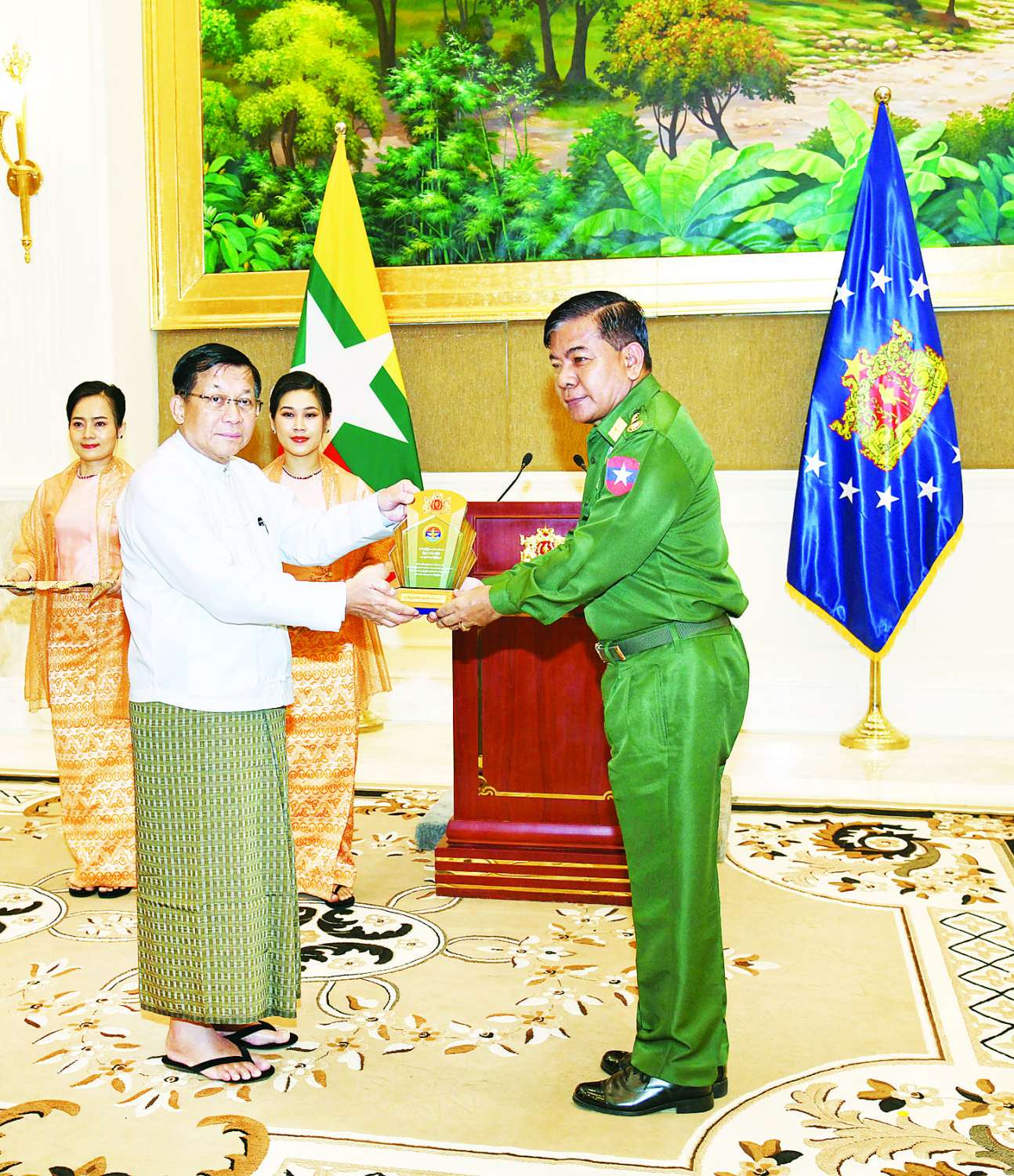 ထို့နောက် ရွေးကောက်တင်မြှောက်ခြင်းခံရသော သမ္မတ နိုင်ငံတော်လုံခြုံရေးနှင့် အေးချမ်းသာယာရေးကော်မရှင်ဥက္ကဋ္ဌ ဗိုလ်ချုပ်မှူးကြီး မင်းအောင်လှိုင်က ကော်မရှင်အဖွဲ့ဝင်များဖြစ်ကြသည့် ဗိုလ်ချုပ်ကြီး မောင်မောင်အေး၊ ဒုတိယဗိုလ်ချုပ်ကြီး ဖုန်းမြတ်၊ ဒုတိယဗိုလ်ချုပ်ကြီး ရာပြည့်၊ ဗိုလ်ချုပ်ကြီး ကျော်စွာလင်း၊ စက်မှုဝန်ကြီးဌာန ပြည်ထောင်စုဝန်ကြီး ဒေါက်တာ ချာလီသန်းနှင့် ကာကွယ်ရေးဦးစီးချုပ်ရုံးမှ အဆင့်မြင့်တပ်မတော်အရာရှိကြီးများ၊ အငြိမ်းစားအဆင့်မြင့်တပ်မတော်အရာရှိကြီးများအား ဂုဏ်ပြုအထိမ်းအမှတ်လက်ဆောင်များ ပေးအပ်ချီးမြှင့်သည်။