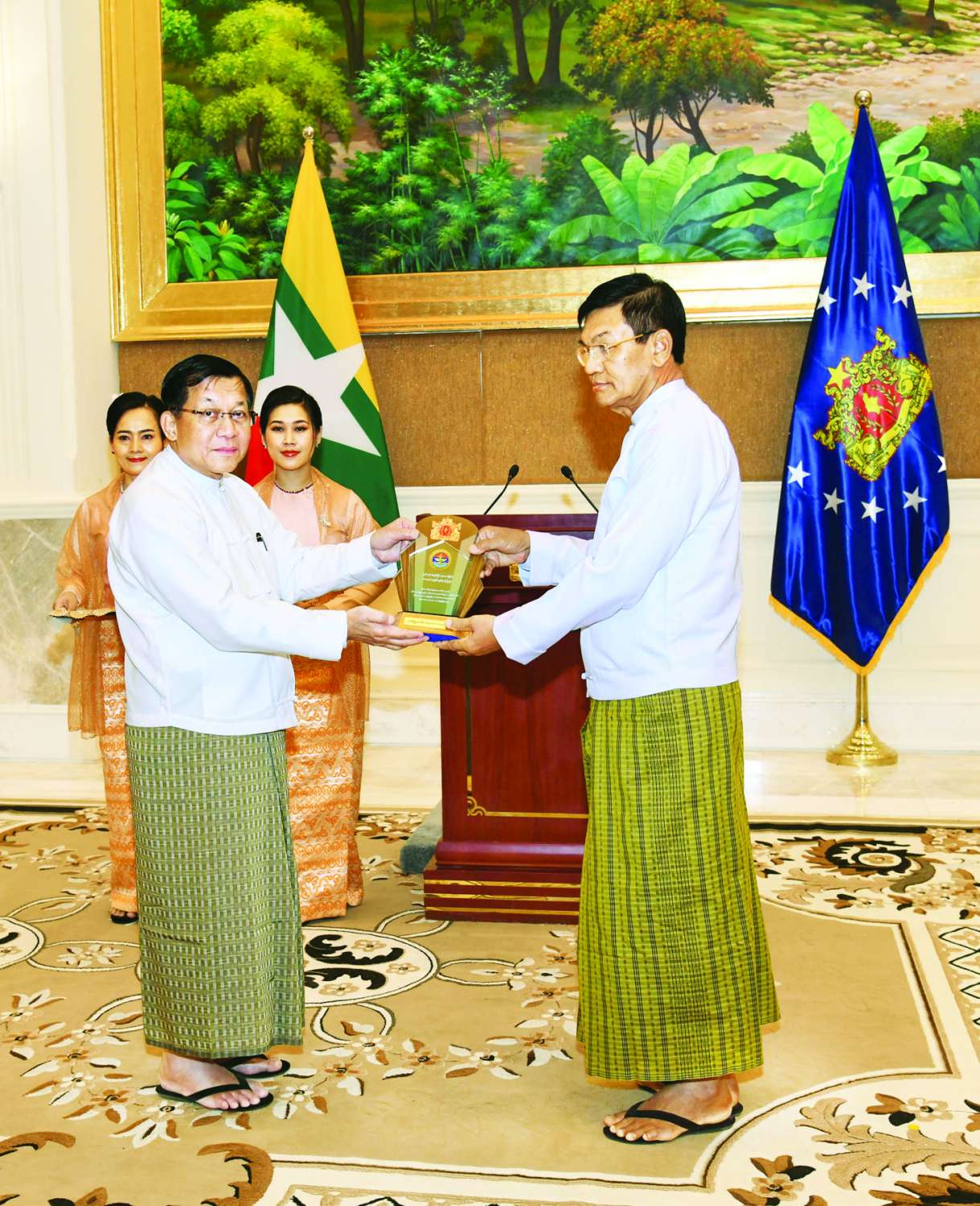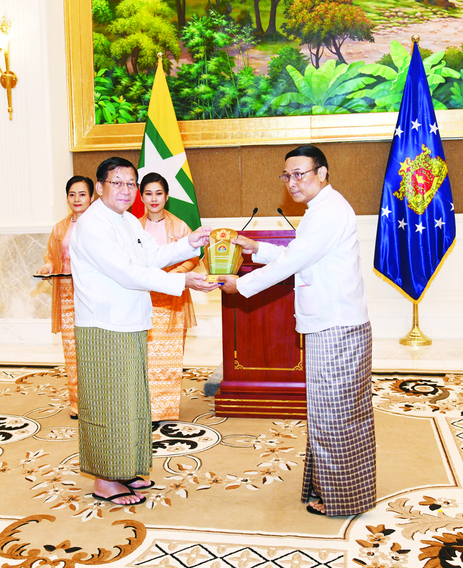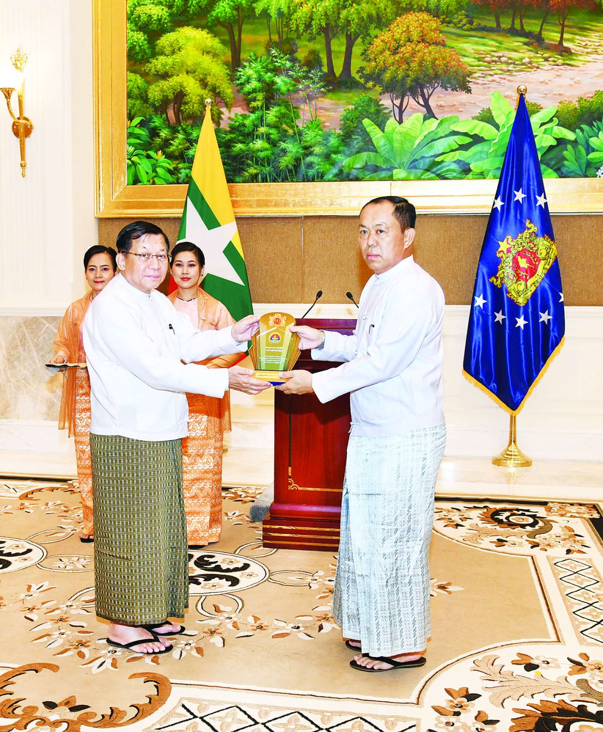 ထို့နောက် ရွေးကောက်တင်မြှောက်ခြင်းခံရသော သမ္မတ နိုင်ငံတော်လုံခြုံရေးနှင့် အေးချမ်းသာယာရေးကော်မရှင်ဥက္ကဋ္ဌ ဗိုလ်ချုပ်မှူးကြီး မင်းအောင်လှိုင်က ကော်မရှင်အဖွဲ့ဝင်များဖြစ်ကြသည့် ဗိုလ်ချုပ်ကြီး မောင်မောင်အေး၊ ဒုတိယဗိုလ်ချုပ်ကြီး ဖုန်းမြတ်၊ ဒုတိယဗိုလ်ချုပ်ကြီး ရာပြည့်၊ ဗိုလ်ချုပ်ကြီး ကျော်စွာလင်း၊ စက်မှုဝန်ကြီးဌာန ပြည်ထောင်စုဝန်ကြီး ဒေါက်တာ ချာလီသန်းနှင့် ကာကွယ်ရေးဦးစီးချုပ်ရုံးမှ အဆင့်မြင့်တပ်မတော်အရာရှိကြီးများ၊ အငြိမ်းစားအဆင့်မြင့်တပ်မတော်အရာရှိကြီးများအား ဂုဏ်ပြုအထိမ်းအမှတ်လက်ဆောင်များ ပေးအပ်ချီးမြှင့်သည်။