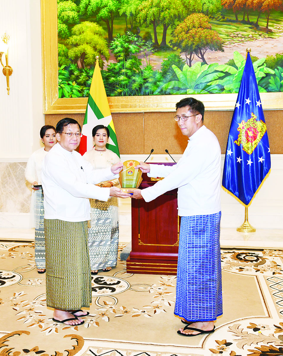 ပြည်ထောင်စုသမ္မတမြန်မာနိုင်ငံတော် ရွေးကောက်တင်မြှောက်ခြင်းခံရသော သမ္မတက တာဝန်ကျေပွန်စွာ ထမ်းဆောင်ခဲ့သည့် ပြည်ထောင်စုဝန်ကြီးနှင့် တပ်မတော်အရာရှိကြီးများ၊ မိုခါမုန်တိုင်းအပါအဝင် သဘာဝဘေးဒဏ်ပြန်လည်ထူထောင်ရေးလုပ်ငန်းများတွင် တာဝန်ကျေပွန်စွာ ထမ်းဆောင်ခဲ့ကြသည့် အရာရှိကြီးများအား ဂုဏ်ပြုအထိမ်းအမှတ်လက်ဆောင်များ ချီးမြှင့်ခြင်းအခမ်းအနားကို ယနေ့မွန်းလွဲပိုင်းတွင် အမျိုးသားကာကွယ်ရေးနှင့် လုံခြုံရေးကောင်စီဥက္ကဋ္ဌရုံး၊ Banquet Hall ၌ ကျင်းပပြုလုပ်ရာ ရွေးကောက်တင်မြှောက်ခြင်းခံရသော သမ္မတ နိုင်ငံတော်လုံခြုံရေးနှင့် အေးချမ်းသာယာရေးကော်မရှင်ဥက္ကဋ္ဌ ဗိုလ်ချုပ်မှူးကြီး မင်းအောင်လှိုင် တက်ရောက်အမှာစကားပြောကြားပြီး ဂုဏ်ပြုအထိမ်းအမှတ်လက်ဆောင်များ ချီးမြှင့်ပေးအပ်သည်။