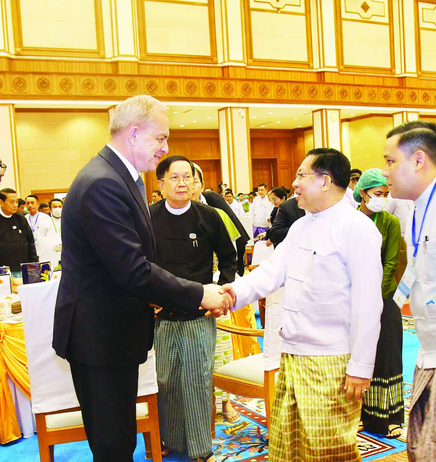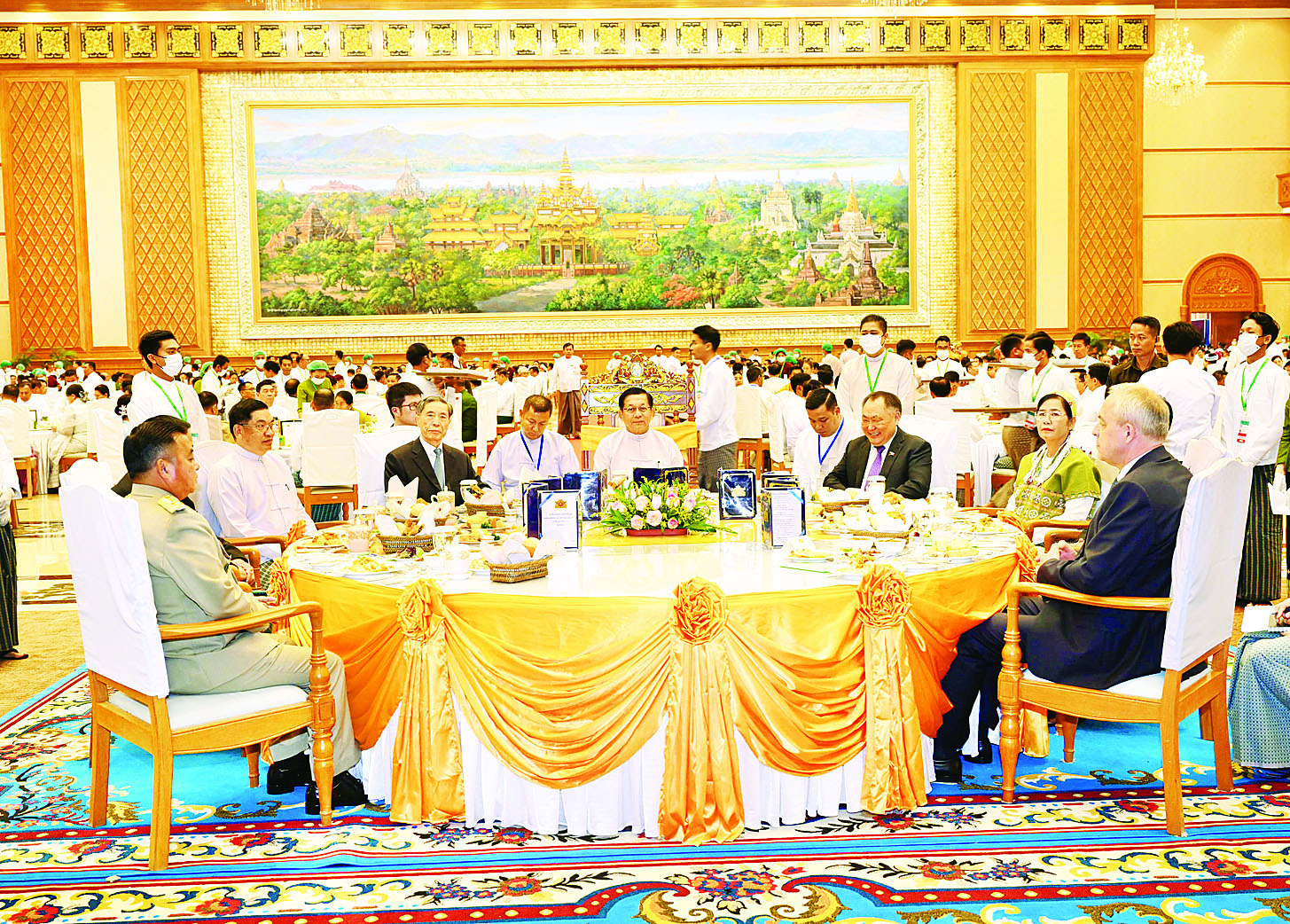 ယင်းနောက် နိုင်ငံတော်သမ္မတ ဦးမင်းအောင်လှိုင်က မိန့်ခွန်းပြောကြားသည်။