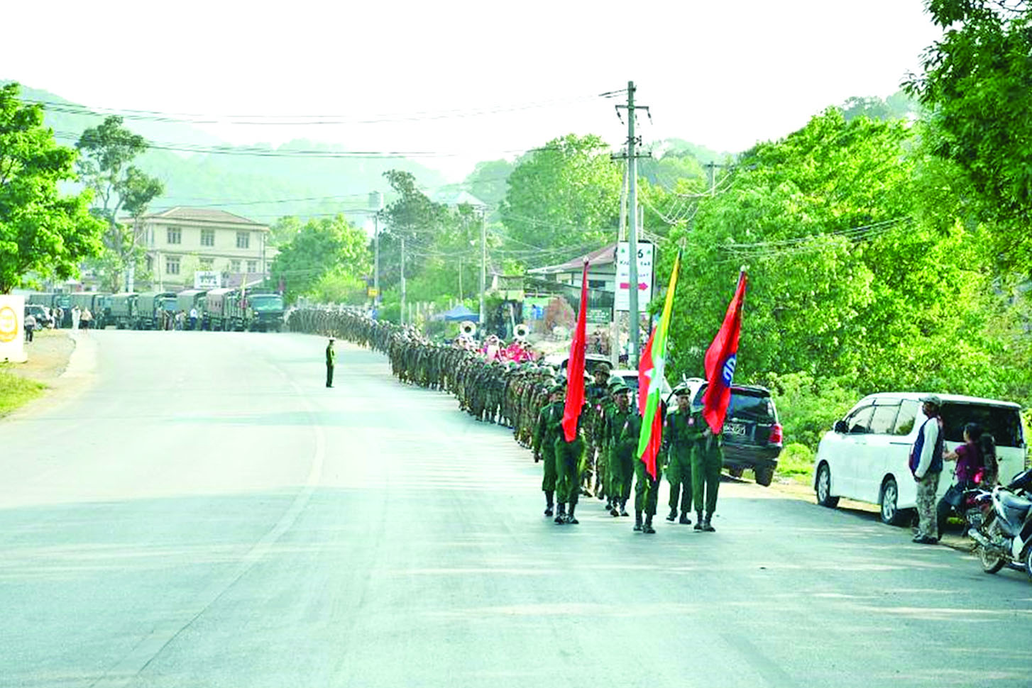 နိုင်ငံတော်တည်ငြိမ်ရေးနှင့် နယ်မြေအေးချမ်းသာယာရေးအတွက် ကရင်ပြည်နယ်၊ ကော့ကရိတ်မြို့နယ်နှင့် သင်္ကန်းညီနောင်မြို့နယ် ဒေသတစ်ဝိုက် နယ်မြေလုံခြုံရေးတာဝန်များကို ထမ်းဆောင်၍ ပြန်လည် ရောက်ရှိလာသော ရှေ့တန်းပြန်နိုင်ငံ့သားကောင်း တပ်မတော်သားများအား ဂုဏ်ပြုကြိုဆိုခြင်းကို ယနေ့ညနေပိုင်းတွင် ရှမ်းပြည်နယ်(တောင်ပိုင်း)၊ ကလောမြို့ရှိ နယ်မြေခံတပ်ရင်း၌ပြုလုပ်ရာ အရှေ့ပိုင်းတိုင်းစစ်ဌာနချုပ် တိုင်းမှူး ဗိုလ်မှူးချုပ် ကျော်နိုင်ဦးနှင့် တာဝန်ရှိသူများ၊ အရာရှိ၊ စစ်သည်၊ မိသားစုဝင်များ၊ ဌာနဆိုင်ရာတာဝန်ရှိသူများ၊ တိုင်းရင်းသားရိုးရာ ယဉ်ကျေးမှုအဖွဲ့များ၊ ဒေသခံပြည်သူများ၊ ဆရာ ဆရာမများ၊ ကျောင်းသား ကျောင်းသူများ ပါဝင်တက်ရောက်ဂုဏ်ပြုကြိုဆိုကြသည်။