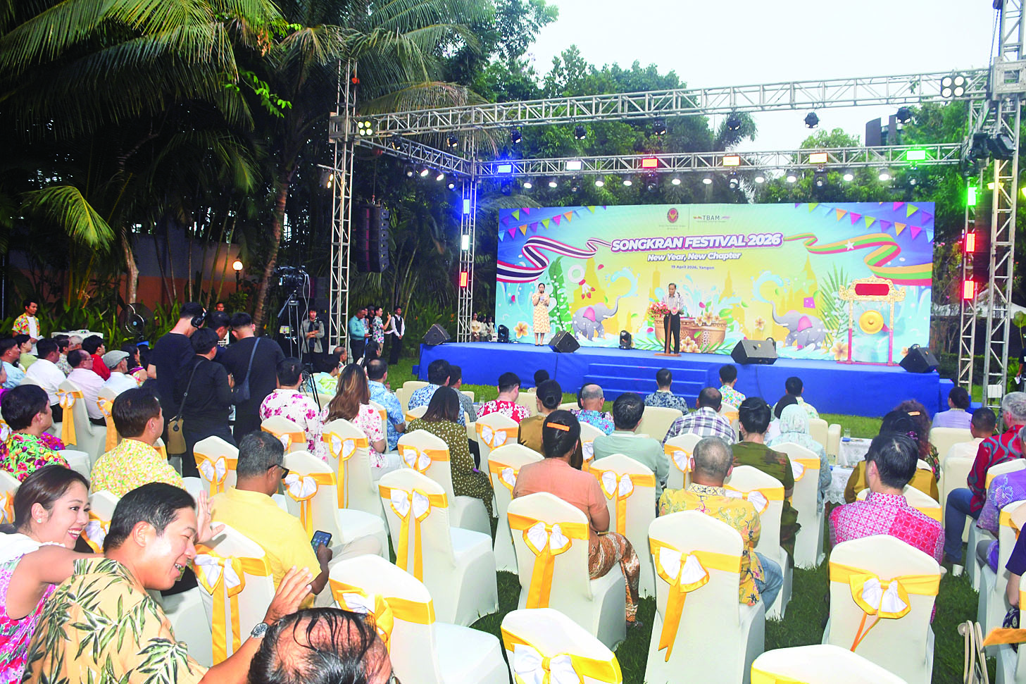 ရန်ကုန်မြို့အခြေစိုက် ထိုင်းနိုင်ငံသံရုံးကကျင်းပသည့် ထိုင်းရိုးရာသင်္ကြန်ပွဲတော် ၂၀၂၆ (Songkran Festival 2026) အခမ်းအနားကို ယနေ့ ညနေ ၅ နာရီခွဲတွင် ရန်ကုန်မြို့ ဒဂုံမြို့နယ် ပြည်လမ်းရှိ ထိုင်းသံအမတ်ကြီးနေအိမ်၌ ကျင်းပသည်။
