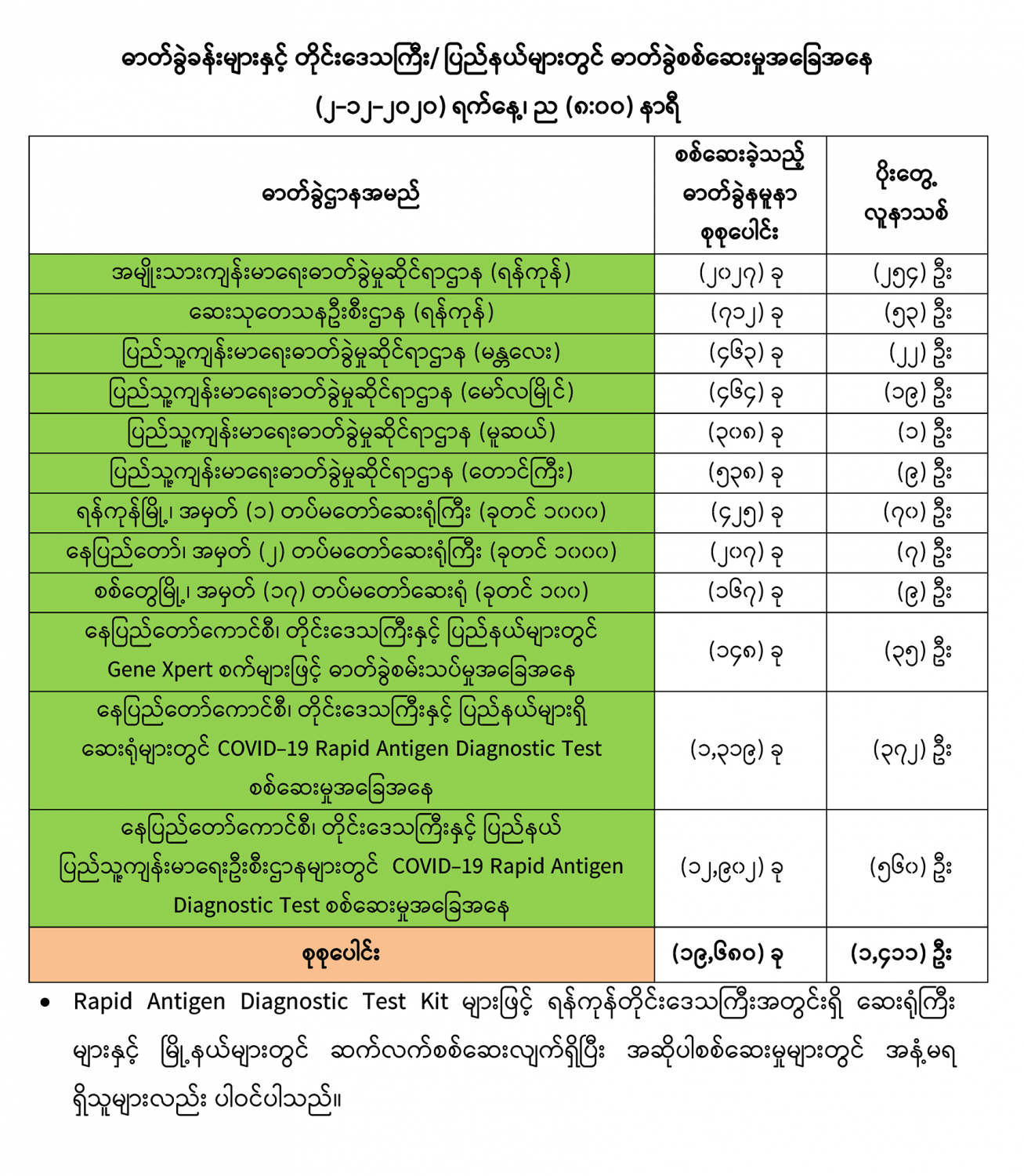 #Ministry_of_Health_and_Sports, #MoHS, #COVID19LabResults, #ကိုရိုနာဗိုင်းရပ်စ်, #ဓာတ်ခွဲအဖြေ