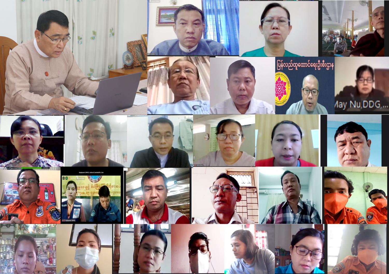 ကိုဗစ်-၁၉ ကာကွယ်ထိန်းချုပ်ကုသရေးလုပ်ငန်းစဉ်များတွင် ပါ၀င်ကြမည့် စေတနာ့ ၀န်ထမ်းများကို ဆင့်ပွား သင်တန်း ပေးခြင်းနှင့် အားပေးစကား ပြောကြားခြင်း အစီစဉ်ကိုယနေ့နံ နက်ပိုင်းတွင် Online စနစ်ဖြင့် ကျင်းပ သည်။