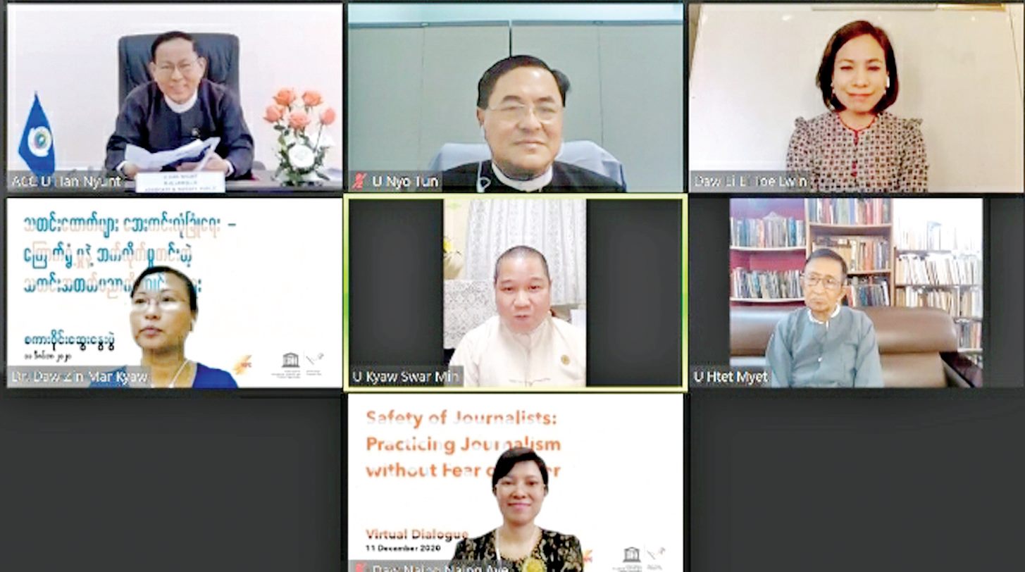 မြန်မာနိုင်ငံ သတင်းမီဒီယာကောင်စီနှင့် ကုလသမဂ္ဂပညာရေး၊ သိပ္ပံနှင့်ယဉ်ကျေးမှု အဖွဲ့အစည်း (ယူနက်စကို) မြန်မာရုံးတို့ ပူးပေါင်း၍သတင်းထောက်များ ဘေးကင်းလုံခြုံရေး- ကြောက်ရွံ့မှုနဲ့ ဘက်လိုက်မှုကင်းတဲ့ သတင်းအတတ်ပညာကို ကျင့်သုံးရေး စကားဝိုင်းဆွေးနွေးပွဲကို ယနေ့နံနက် ၁၀ နာရီမှ ၁၂ နာရီ အထိ အွန်လိုင်းမှတစ်ဆင့် ကျင်းပသည်။