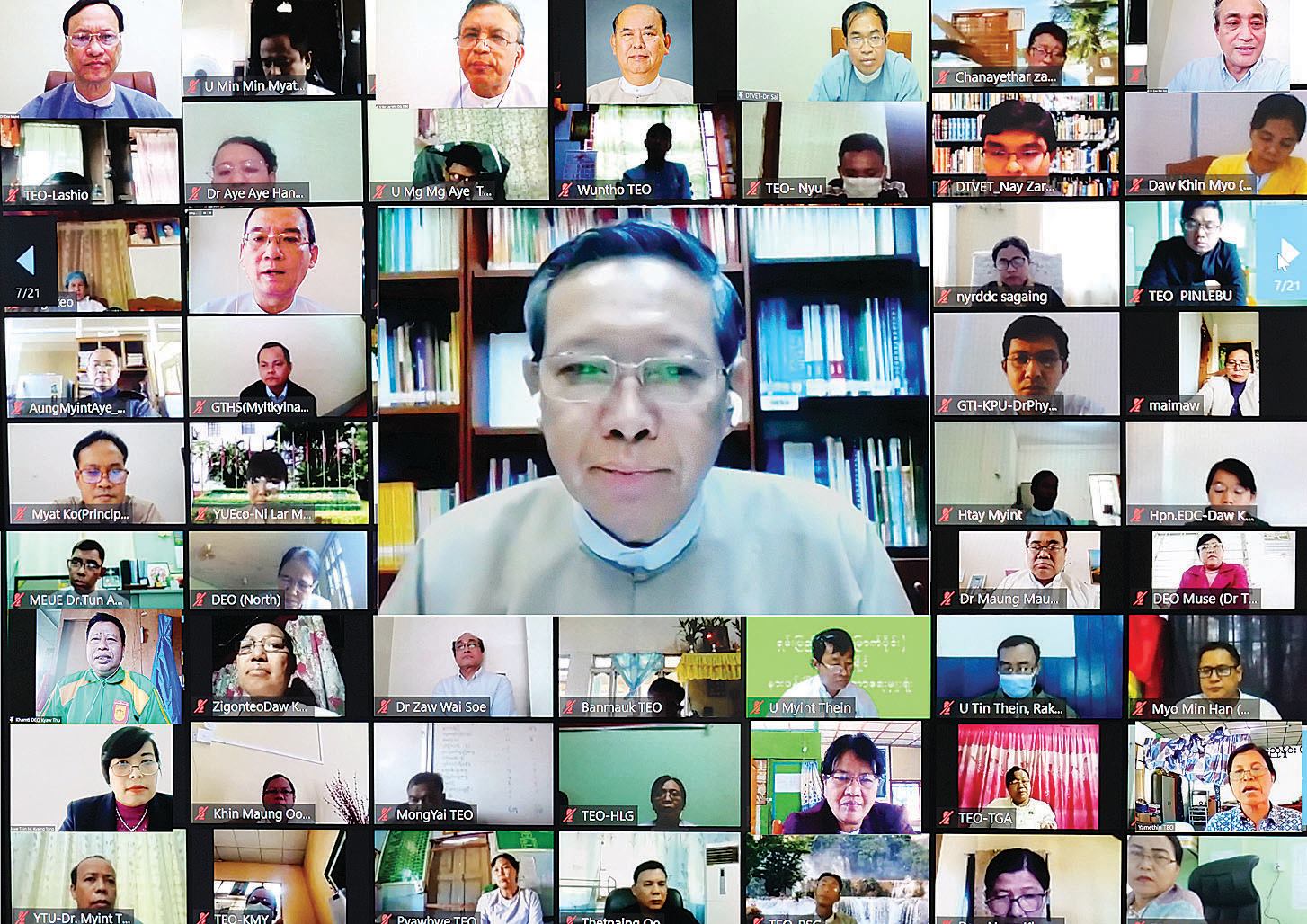 အမျိုးသားပညာရေးမဟာဗျူဟာစီမံကိန်း (၂၀၂၁-၂၀၃၀) (National Education Strategic Plan - NESP) (2021-2030) ရေးဆွဲရေးအတွက် ပါမောက္ခချုပ်များကော်မတီ၊ ပါမောက္ခချုပ်များ၊ ကျောင်းအုပ်ကြီးများ၊ ပညာရေးမှူးများ၊ တာဝန်ရှိသူများနှင့် လုပ်ငန်းညှိနှိုင်းအစည်းအဝေးကို ယနေ့ နံနက် ၉ နာရီခွဲတွင် နေပြည်တော် ပညာရေးဝန်ကြီးဌာန ရုံးအမှတ် (၁၃) မှ ဗီဒီယိုကွန်ဖရင့်စနစ်ဖြင့် ကျင်းပသည်။