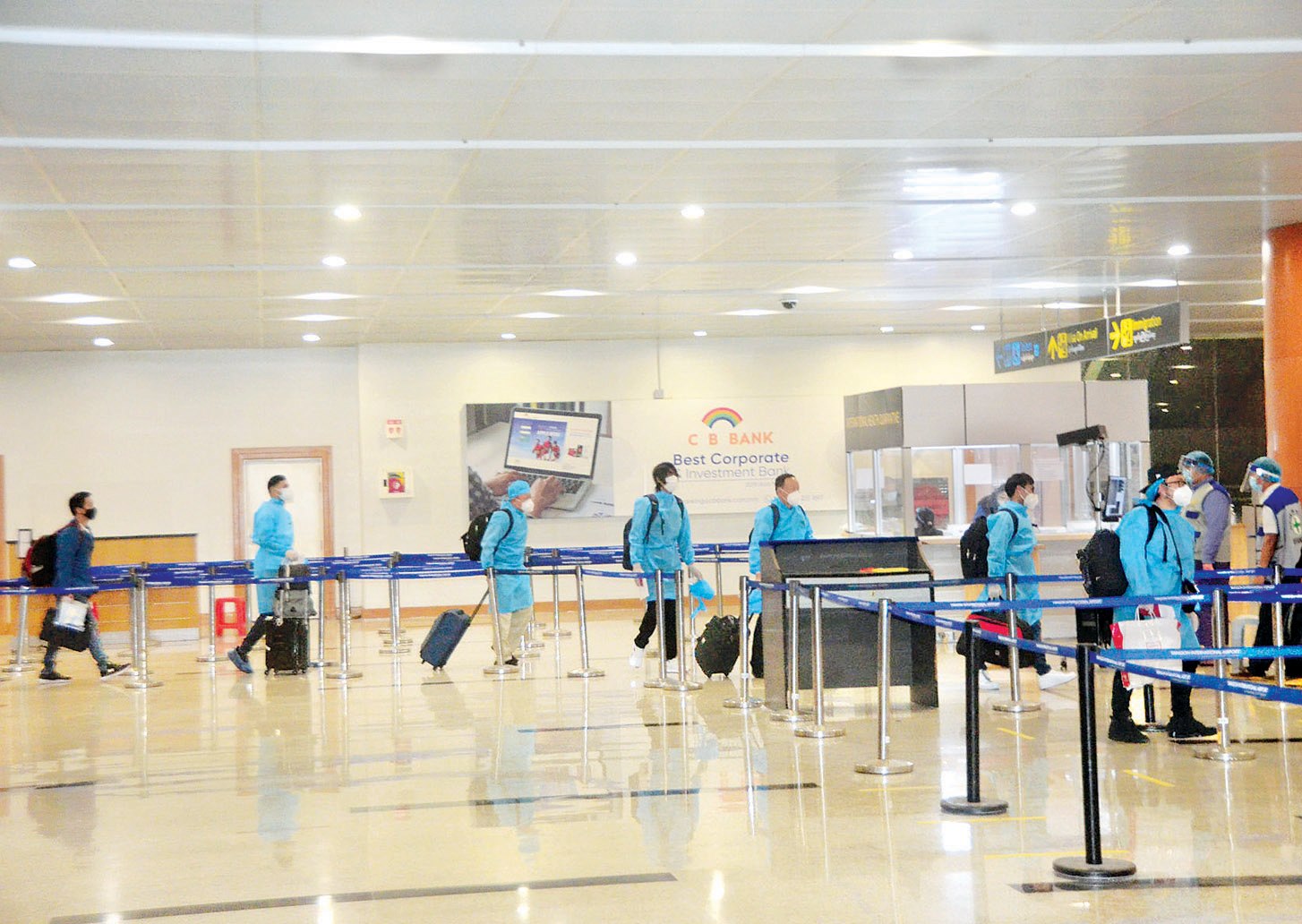 ၎င်းတို့ ရန်ကုန်အပြည်ပြည်ဆိုင်ရာလေဆိပ်သို့ ရောက်ရှိချိန်တွင် လူဝင်မှုကြီးကြပ်ရေး၊ ကျန်းမာရေးစိစစ်ရေး၊ သီးသန့်စီစဉ်ပေးသည့် နေရာ/ သတ်မှတ် ဟိုတယ်များ၌ အသွားအလာကန့်သတ်မှု ခုနစ်ရက်နှင့် နေအိမ်တွင် အသွားအလာကန့်သတ်မှု ခုနစ်ရက် နေထိုင်စေရေးတို့ကို အလုပ်သမား၊ လူဝင်မှုကြီးကြပ်ရေးနှင့် ပြည်သူ့အင်အားဝန်ကြီးဌာန၊ ကျန်းမာရေးနှင့် အားကစားဝန်ကြီးဌာနနှင့် ရန်ကုန်တိုင်းဒေသကြီးအစိုးရအဖွဲ့တို့မှ သက်ဆိုင်ရာအခန်းကဏ္ဍအလိုက် တာဝန်ယူဆောင်ရွက်ပေးခဲ့ကြသည်။