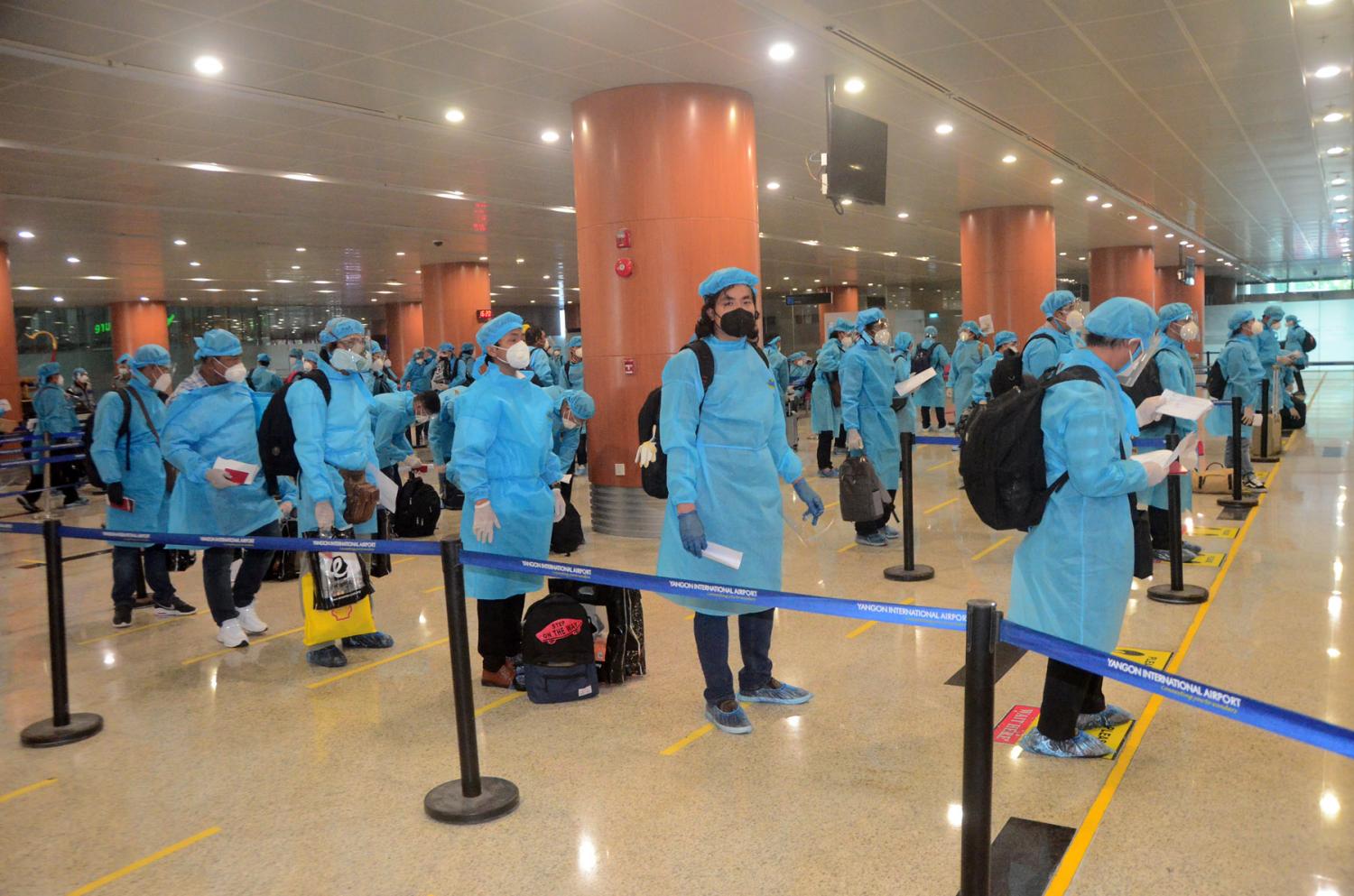 ၎င်းတို့ ရန်ကုန်အပြည်ပြည်ဆိုင်ရာလေဆိပ်သို့ ရောက်ရှိချိန်တွင် လူဝင်မှုကြီးကြပ် ရေး၊ ကျန်းမာရေးစိစစ်ရေး၊ သီးသန့်စီစဉ်ပေးသည့်နေရာ / သတ်မှတ်ဟိုတယ်များ၌ အသွားအလာ ကန့်သတ်မှု (၇)ရက် နှင့် နေအိမ်တွင် အသွားအလာကန့်သတ်မှု (၇) ရက် နေထိုင်စေရေးတို့ကို အလုပ်သမား၊ လူဝင်မှုကြီးကြပ်ရေးနှင့် ပြည်သူ့အင်အားဝန်ကြီးဌာန၊ ကျန်းမာရေးနှင့် အားကစားဝန်ကြီးဌာနနှင့် ရန်ကုန်တိုင်းဒေသကြီး အစိုးရအဖွဲ့တို့မှ သက်ဆိုင်ရာ အခန်းကဏ္ဍအလိုက် တာဝန်ယူဆောင်ရွက်ပေးခဲ့သည်။