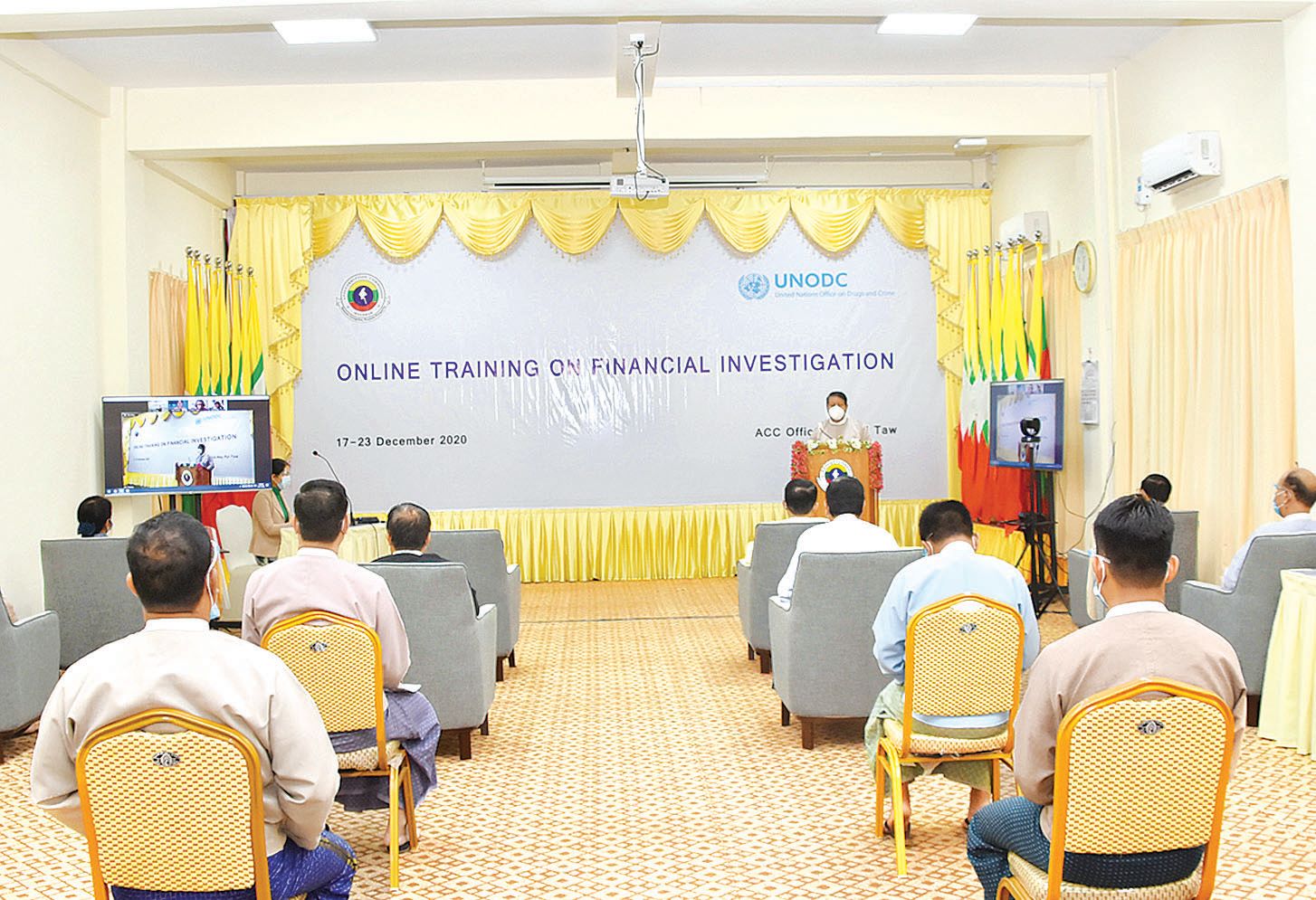 အဂတိလိုက်စားမှု တိုက်ဖျက်ရေးကော်မရှင်နှင့် ကုလသမဂ္ဂ မူးယစ်ဆေးဝါးနှင့် ပြစ်မှုဆိုင်ရာရုံး (UNODC) တို့ ပူးပေါင်းစီစဉ်မှုဖြင့် Online Training on Financial Investigation သင်တန်းဖွင့်ပွဲအခမ်းအနားကို ယမန်နေ့က ကော်မရှင်ရုံးသင်တန်းခန်းမ၌ Zoom Application စနစ်ဖြင့် ကျင်းပသည်။
