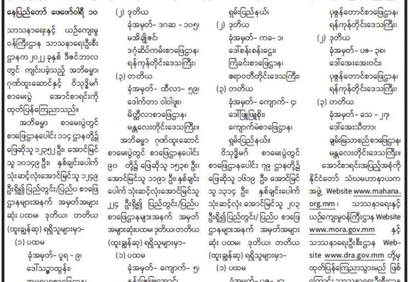 ၂၀၂၃ ခုနှစ် သာသနာတော်ဆိုင်ရာ ဘွဲ့တံဆိပ်တော်များ ဆက်ကပ်ချီးမြှင့်အပ်နှင်းပွဲ အခမ်းအနားကို မတ် ၅ ရက် (၁၃၈၄ ခုနှစ်၊ တပေါင်း လပြည့်နေ့) တနင်္ဂနွေနေ့ မွန်းလွဲ ၁ နာရီတွင်လည်းကောင်း၊ နေ့ဆွမ်းဆက်ကပ်လှူဒါန်းပွဲအခမ်းအနားကို မတ် ၃ ရက် နံနက် ၉ နာရီခွဲတွင်လည်းကောင်း၊ နေပြည်တော်ဥပ္ပါတသန္တိ စေတီတော်ပရိဝုဏ်အတွင်းရှိ သာသနာ့မဟာဗိမာန်တော်၌ ကျင်းပပြုလုပ်သွားမည်ဖြစ်သည်။