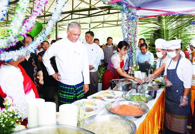 (၇၆) နှစ်မြောက် ပြည်ထောင်စုနေ့ကို ကြိုဆိုဂုဏ်ပြုသောအားဖြင့် တိုင်းရင်းသားရိုးရာ အစားအသောက်ပွဲတော်ကို ယနေ့တွင် စီးပွားရေးနှင့်ကူးသန်း ရောင်းဝယ်ရေးဝန်ကြီးဌာန၌ ကျင်းပရာ ပြည်ထောင်စုဝန်ကြီး ဦးအောင်နိုင်ဦး တက်ရောက်အမှာစကား ပြောကြားသည်။