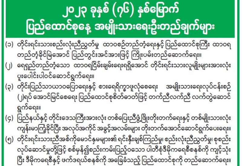 ၂၀၂၃ ခုနှစ် (၇၆)နှစ်မြောက် ပြည်ထောင်စုနေ့ အမျိုးသားရေးဦးတည်ချက်များ