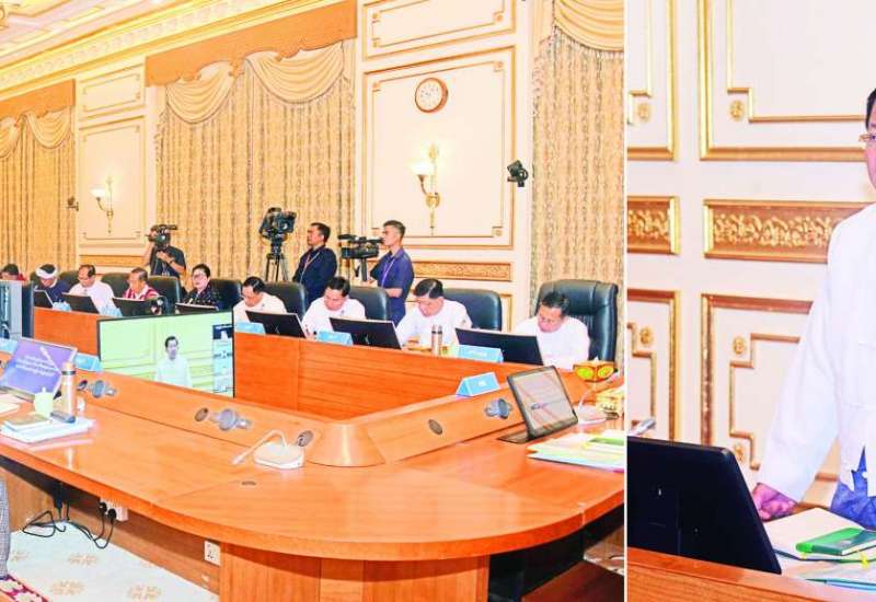 ပြည်ထောင်စုအစိုးရအဖွဲ့အစည်းအဝေး အမှတ်စဉ်(၂/၂၀၂၃)ကို ယနေ့မွန်းလွဲပိုင်းတွင် နေပြည်တော်ရှိ နိုင်ငံတော်စီမံအုပ်ချုပ်ရေးကောင်စီဥက္ကဋ္ဌရုံး အစည်းအဝေးခန်းမ၌ကျင်းပရာ နိုင်ငံတော်စီမံအုပ်ချုပ်ရေးကောင်စီဥက္ကဋ္ဌ နိုင်ငံတော်ဝန်ကြီးချုပ် ဗိုလ်ချုပ်မှူးကြီးမင်းအောင်လှိုင် တက်ရောက်အမှာစကားပြောကြားသည်။