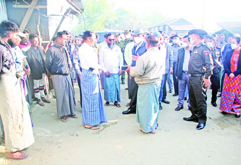 ရခိုင်ပြည်နယ် တည်ငြိမ်အေးချမ်းရေးနှင့် ဖွံ့ဖြိုးတိုးတက်ရေးဆိုင်ရာ လုပ်ငန်းများညှိနှိုင်းပေါင်းစပ်ရေးကော်မတီဥက္ကဋ္ဌ နယ်စပ်ရေးရာဝန်ကြီးဌာန ပြည်ထောင်စုဝန်ကြီး ဒုတိယဗိုလ်ချုပ်ကြီးထွန်းထွန်းနောင်သည် အပြည်ပြည်ဆိုင်ရာပူးပေါင်းဆောင်ရွက်ရေးဝန်ကြီးဌာန ပြည်ထောင်စုဝန်ကြီး ဦးကိုကိုလှိုင်၊ လူဝင်မှုကြီးကြပ်ရေးနှင့်ပြည်သူ့အင်အားဝန်ကြီးဌာန ပြည်ထောင်စုဝန်ကြီးဦးမြင့်ကြိုင်၊ လူမှုဝန်ထမ်း၊ ကယ်ဆယ်ရေးနှင့် ပြန်လည်နေရာချထားရေးဝန်ကြီးဌာန ပြည်ထောင်စုဝန်ကြီး ဒေါက်တာသက်သက်ခိုင်၊ ရခိုင်ပြည်နယ်ဝန်ကြီးချုပ်တို့နှင့်အတူ ဖေဖော်ဝါရီ ၈ ရက်နံနက်ပိုင်းက စစ်တွေမြို့ ဘောဒူဖ IDPs စခန်းသို့သွားရောက်၍ စခန်းရှိဘင်္ဂါလီများ၏ နေထိုင်စားသောက်မှုနှင့် ကျန်းမာရေးအခြေအနေတို့ကို လှည့်လည်ကြည့်ရှုစစ်ဆေးကြသည်။