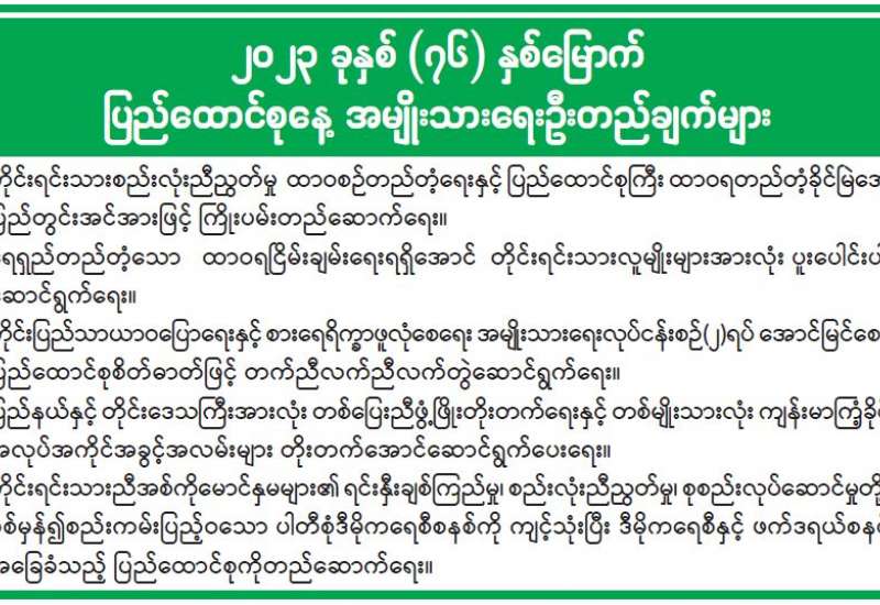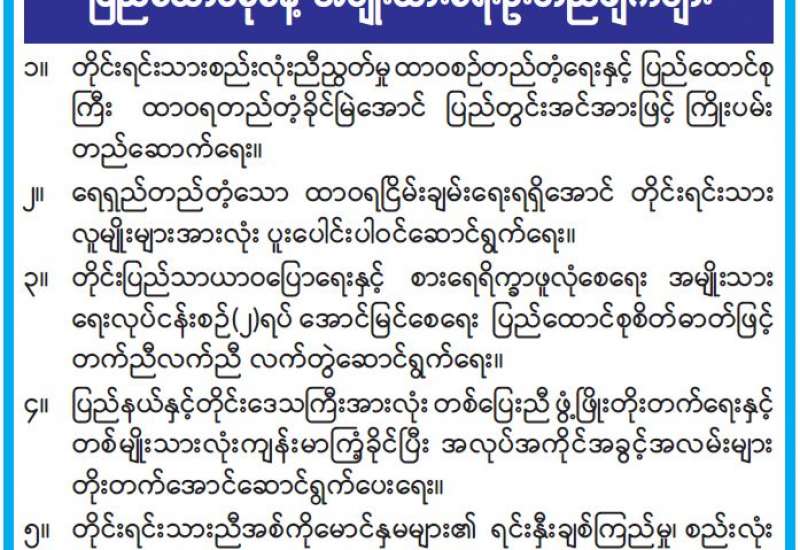 ၂၀၂၃ ခုနှစ် (၇၆) နှစ်မြောက် ပြည်ထောင်စုနေ့ အမျိုးသားရေးဦးတည်ချက်များ