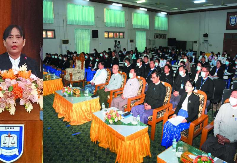 ဥပဒေရေးရာဝန်ကြီးဌာန၏ စီးပွားရေးစာချုပ်စာတမ်းများ စိစစ်ခြင်းဆိုင်ရာအခြေခံသင်တန်းအမှတ်စဉ်၊ ၁/၂၀၂၃ သင်တန်းဖွင့်ပွဲအခမ်းအနားကို ယနေ့နံနက် ၁၁ နာရီခွဲတွင် ဥပဒေရေးရာဝန်ကြီးဌာနရှိ မြေညီထပ်အစည်းအဝေးခန်းမ၌ ကျင်းပသည်။