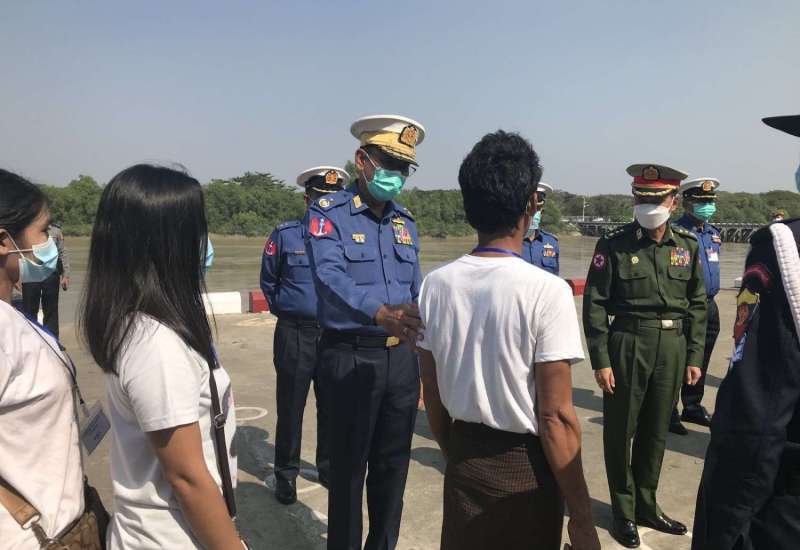 နိုင်ငံတော်စီမံအုပ်ချုပ်ရေးကောင်စီဥက္ကဌ တပ်မတော်ကာကွယ်ရေးဦးစီးချုပ် ဗိုလ်ချုပ်မှူးကြီး မင်းအောင်လှိုင်၏ လမ်းညွှန်မှာကြားချက်အရ ထိုင်းနိုင်ငံတွင် ရောက်ရှိနေပြီး အကြောင်းအမျိုးမျိုးကြောင့် မြန်မာနိုင်ငံသို့ ပြန်လာရန်အခက်အခဲကြုံတွေ့ခဲ့ရသော နေရပ်ပြန်မြန်မာနိုင်ငံသား ၆၇၉ ဦးတို့အနက် ကော့သောင်းမြို့မှ မိုင်ပေါင်း ၄၅၅ မိုင်ခန့်ကွာဝေးသည့် ရန်ကုန်တိုင်းဒေသကြီးမှ နေရပ်ပြန်မြန်မာနိုင်ငံသား ၁၁၈ ဦးအား မြန်မာ့တပ်မတော်(ရေ)မှ စစ်ရေယာဉ် (ကျန်စစ်သား) ဖြင့် ခေါ်ဆောင်လာခဲ့ရာ ယနေ့မွန်းလွဲပိုင်း ၁၄၀၀ ချိန်တွင် ရန်ကုန်မြို့၊ အမှတ်(၃) ရေတပ်ဆိပ်ခံတံတား (သီလဝါ) သို့ ရောက်ရှိခဲ့ပါသည်။