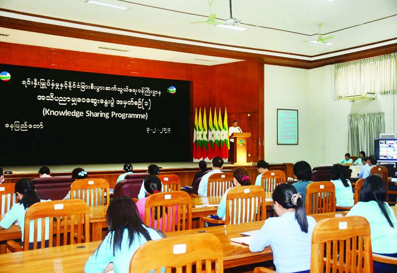 ရင်းနှီးမြှုပ်နှံမှုနှင့် နိုင်ငံခြားစီးပွားဆက်သွယ်ရေးဝန်ကြီးဌာန ဝန်ထမ်းများ၏ လူ့စွမ်းအားအရင်းအမြစ် ဖွံ့ဖြိုးတိုးတက်စေရေးနှင့် ဝန်ထမ်းစွမ်းဆောင် ရည်မြှင့်တင်ရေးအတွက် ပြည်ပတွင် ကျင်းပပြုလုပ်ခဲ့သည့် ကာလတို၊ ကာလရှည်သင်တန်းများ၊ အလုပ်ရုံဆွေးနွေးပွဲများ၊ Seminar များ၊ အစည်းအဝေးပွဲများသို့ တက်ရောက်စေလွှတ်ခဲ့ရာ အဆိုပါဝန်ထမ်းများက ၎င်းတို့တွေ့ကြုံခဲ့ရသော အသိပညာ၊ ဗဟုသုတနှင့် နိုင်ငံခြားပညာသင်များက လေ့လာသင်ယူခဲ့ရသော ဘာသာရပ်များကို မိမိတို့ဝန်ကြီးဌာနရှိ ဝန်ထမ်းများအား ပြန်လည်မျှဝေသည့် ဆွေးနွေးပွဲ (Knowledge Sharing Programme - KSP) ကို ယနေ့မွန်းလွဲပိုင်း တွင် ရင်းနှီးမြှုပ်နှံမှုနှင့် နိုင်ငံခြားစီးပွားဆက်သွယ်ရေးဝန်ကြီးဌာန ရုံးအမှတ် (၁) ၌ ကျင်းပသည်။