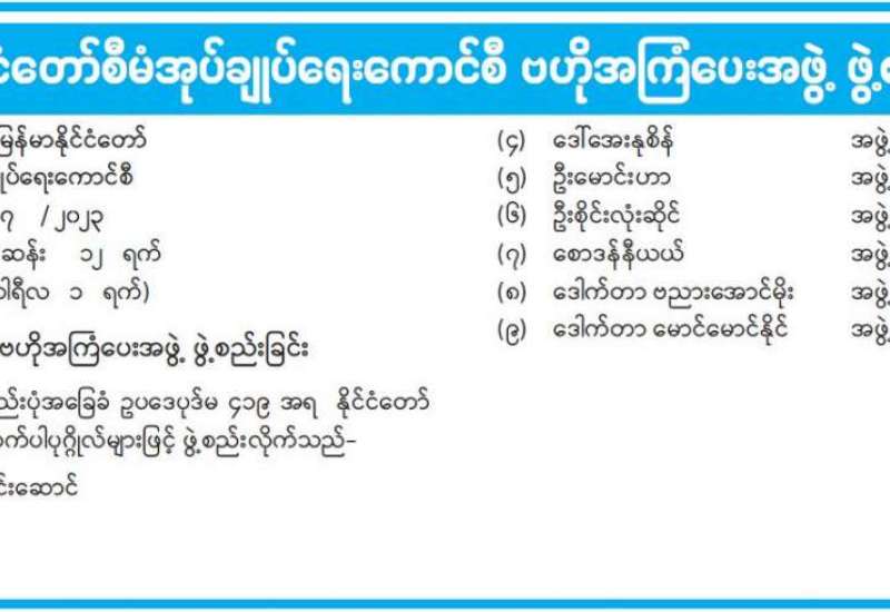 လူမှုရေးစီမံခန့်ခွဲမှုဆိုင်ရာ သတင်းအချက်အလက်စနစ် (Social Management Information System-SMIS) ၏ CMIS Software စမ်းသပ်အသုံးပြုခြင်းသင်တန်း ဒုတိယအကြိမ်ဖွင့်ပွဲ အခမ်းအနားကို ယနေ့နံနက် ၁၀ နာရီက နေပြည်တော်မင်္ဂလာသီရိဟိုတယ်၌ ကျင်းပသည်။