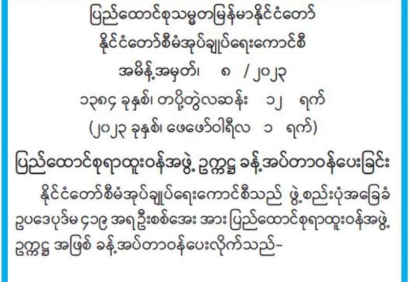 နိုင်ငံအတွင်း ဖြစ်ပေါ်နေသည့် သာမန်မဟုတ်သည့် အခြေအနေများကြောင့် နိုင်ငံတစ်ဝန်းလုံး အရေးပေါ်အခြေအနေ ကြေညာထားသည့်ကာလကို ဖေဖော်ဝါရီလ ၁ ရက်မှစ၍ နောက်ထပ် (၆)လ သက်တမ်းတိုးမြှင့်လိုက်သည်။ ဤသည်မှာ အကြမ်းဖက်အဖွဲ့အစည်းများအဖြစ် ကြေညာထားသည့် CRPH ၊ NUG နှင့် ၎င်းတို့၏ လက်ဝေခံ PDF တို့က အပြစ်မဲ့ ပြည်သူများကို သတ်ဖြတ်ခြင်း၊ အများပြည်သူဆိုင်ရာ နေရာများကို အကြမ်းဖက်ဗုံးခွဲတိုက်ခိုက်ခြင်း၊ ပြည်သူများကို လက်နက်ကိုင်ခြိမ်းခြောက်အကျပ်ကိုင်ခြင်းတို့ကို သာမန်အခြေအနေထက် လွန်ကဲစွာ ပြုလုပ်လျက်ရှိပြီး နိုင်ငံတော်အာဏာကို ဆူပူသောင်းကျန်းမှုနှင့် အကြမ်းဖက်မှုနည်းလမ်းများဖြင့် ရယူရန် ကြိုးပမ်းလုပ်ဆောင်လျက်ရှိသည့် အခြေ အနေရှိနေဆဲဖြစ်ခြင်းကြောင့်ပင် ဖြစ်သည်။