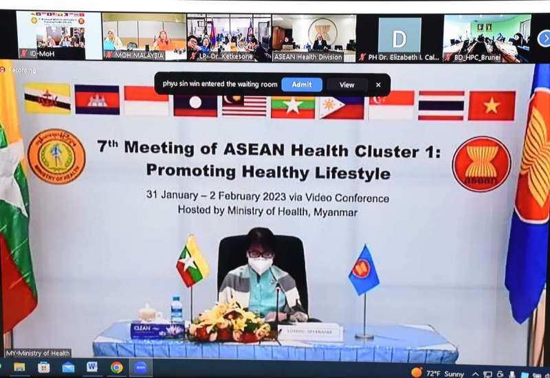(၇)ကြိမ်မြောက် အာဆီယံကျန်းမာသောလူနေမှုစနစ်မြှင့်တင်ရေး ကျန်းမာရေးဆိုင်ရာအစုအဖွဲ့-၁ အစည်းအဝေး (7th Meeting of ASEAN Health Cluster 1: Promoting Healthy Lifestyle) ဖွင့်ပွဲအခမ်းအနားကို နေပြည်တော်၊ ကျန်းမာရေးဝန်ကြီးဌာန အစည်းအဝေးခန်းမ၌ ယနေ့နံနက် (၈) နာရီခွဲတွင် Hybrid စနစ်ဖြင့် ကျင်းပသည်။