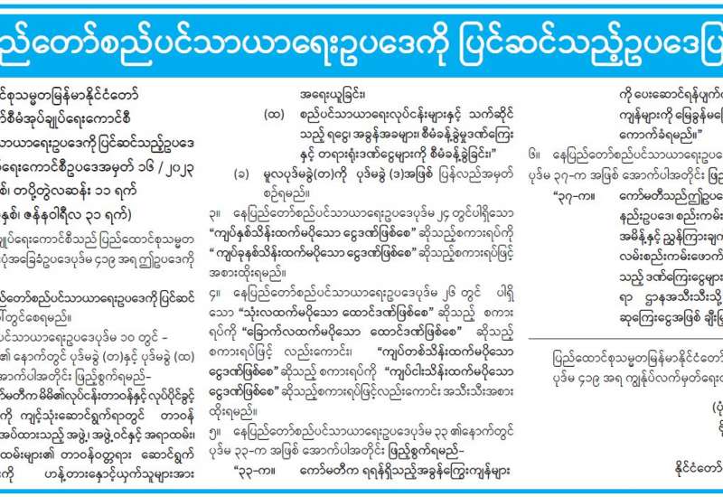 နေပြည်တော်စည်ပင်သာယာရေးဥပဒေကို ပြင်ဆင်သည့်ဥပဒေပြဋ္ဌာန်း