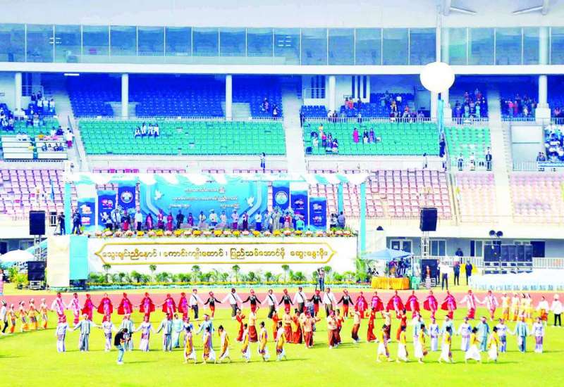 (၇၆)နှစ်မြောက် ပြည်ထောင်စုနေ့ကို ကြိုဆိုဂုဏ်ပြုခြင်းနှင့် နိုင်ငံတော်မှ ကျင်းပပြုလုပ်လျက်ရှိသော တစ်နိုင်ငံလုံး ပစ်ခတ်တိုက်ခိုက်မှုရပ်စဲရေး ငြိမ်းချမ်းရေးဆွေးနွေးပွဲများကို ကြိုဆိုထောက်ခံသောအားဖြင့် မန္တလေးတိုင်းဒေသကြီးအစိုးရအဖွဲ့က ကြီးမှူးကျင်းပသော လူငယ်ရေးရာကော်မတီစုံညီပွဲတော်ကို ယနေ့နံနက်ပိုင်းက မန္တလေးမြို့ မန္တလာသီရိအားကစားကွင်း၌ ကျင်းပပြုလုပ်ရာ အခမ်းအနားသို့ မန္တလေးတိုင်းဒေသကြီးအစိုးရအဖွဲ့ဝန်ကြီးချုပ် ဦးမောင်ကို၊ အလယ်ပိုင်းတိုင်းစစ်ဌာနချုပ်တိုင်းမှူး ဗိုလ်ချုပ် ကိုကိုဦး၊ မန္တလေးတိုင်းဒေသကြီးအစိုးရအဖွဲ့ဝင်ဝန်ကြီးများ၊ မြို့မိမြို့ဖများ၊ ဒေသခံပြည်သူများ၊ တက္ကသိုလ်/ဒီဂရီကောလိပ်နှင့် အခြေခံပညာမှ ဆရာ ဆရာမများနှင့် ကျောင်းသား ကျောင်းသူများ စုစုပေါင်း အင်အား ၃၀၀၀ဝ ခန့် တက်ရောက်ကြသည်။