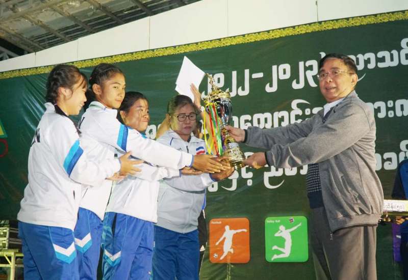 ၂၀၂၂-၂၀၂၃ပညာသင်နှစ် အခြေခံပညာကျောင်းသားအားကစားပွဲတော် ဆုချီးမြှင့်ပွဲ၊ ပိတ်ပွဲနှင့်ညစာစားပွဲအခမ်းအနားကို ယမန်နေ့ညနေ ၆ နာရီခွဲတွင် နေပြည်တော် အားကစားလေ့ကျင့်ရေးစခန်း Social Zone ၌ကျင်းပရာ ပညာရေးဝန်ကြီးဌာန၊ ပြည်ထောင်စုကြီး ဒေါက်တာညွန့်ဖေ၊ ဒုတိယဝန်ကြီး ဦးဇော်ဝင်းနှင့် ဒေါက်တာဇော်မြင့်၊ အားကစားနှင့်လူငယ်ရေးရာဝန်ကြီးဌာန ဒုတိယဝန်ကြီး ဦးမျိုးလှိုင်၊ ဒုတိယအမြဲတမ်းအတွင်းဝန်များနှင့် တာဝန်ရှိသူများ၊ တိုင်းဒေသကြီးနှင့် ပြည်နယ်များမှ အားကစားနည်းအလိုက် အုပ်ချုပ်သူ၊ နည်းပြများ၊ အားကစားမောင်မယ် ကျောင်းသား ကျောင်းသူများ တက်ရောက်ကြသည်။