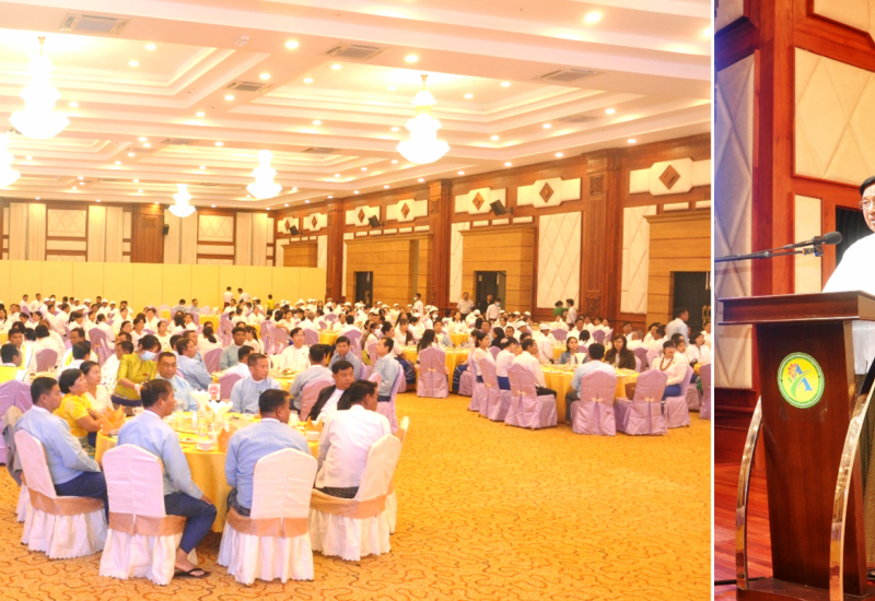 (၇၅)နှစ်မြောက် စိန်ရတုလွတ်လပ်ရေးနေ့အခမ်းအနားတွင် စက်မှုဝန်ကြီးဌာနကိုယ်စားပြု စစ်ရေးပြချီတက်စစ်ကြောင်း၊ ထိုင်ကြည့်စစ်ကြောင်း၊ ပြခန်း၊ ဂုဏ်ပြုယာဉ်တို့တွင် ပါဝင်တာဝန်ထမ်းဆောင်ခဲ့သည့် ဝန်ထမ်းများ ဂုဏ်ပြုညစာစားပွဲ အခမ်းအနားကို ယမန်နေ့ ညပိုင်းတွင် နေပြည်တော်ရှိ Grand Aster Villa Hotel ၌ကျင်းပရာ စက်မှုဝန်ကြီးဌာန၊ ပြည်ထောင်စုဝန်ကြီး ဒေါက်တာချာလီသန်း၊ ညွှန်ကြားရေးမှူးချုပ်များ၊ ဦးဆောင်ညွှန်ကြားရေးမှူးများ၊ (၇၅)နှစ်မြောက် စိန်ရတုလွတ်လပ်ရေးနေ့အခမ်းအနားတွင် တာဝန်ထမ်းဆောင်ခဲ့သည့် ဝန်ထမ်းများနှင့် စက်မှုဝန်ကြီးဌာနမှ တာဝန်ရှိသူများ တက်ရောက်ကြသည်။