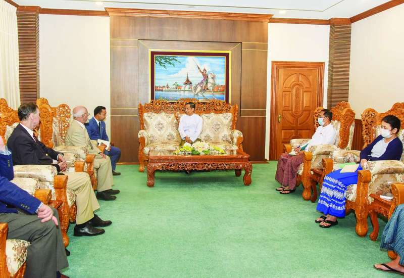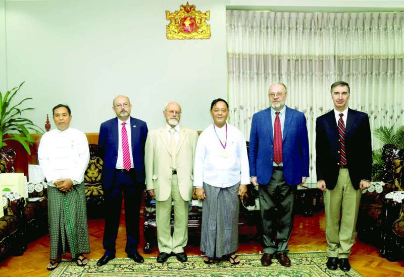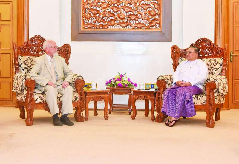 စိုက်ပျိုးရေး၊မွေးမြူရေးနှင့် ဆည်မြောင်းဝန်ကြီးဌာနနှင့် သမဝါယမနှင့် ကျေးလက်ဖွံ့ဖြိုးရေးဝန်ကြီးဌာန ပြည်ထောင်စုဝန်ကြီး ဦးလှမိုးသည် ရုရှား - မြန်မာ ချစ်ကြည်ရေးနှင့် ပူးပေါင်းဆောင်ရွက်ရေးအသင်း ဒုတိယဥက္ကဋ္ဌဖြစ်သူ မစ္စတာ အန်နာသိုလီ ဘူးလော့ချ် နိကော့ (Mr. Anatoly Bulochnikov, Senior Vice-President of the Russia-Myanmar Association) ဦးဆောင်သော ကိုယ်စားလှယ်အဖွဲ့ကို ယနေ့မွန်းလွဲပိုင်းတွင် ပြည်ထောင်စုဝန်ကြီးရုံးဧည့်ခန်းမ၌ တွေ့ဆုံဆွေးနွေးသည်။