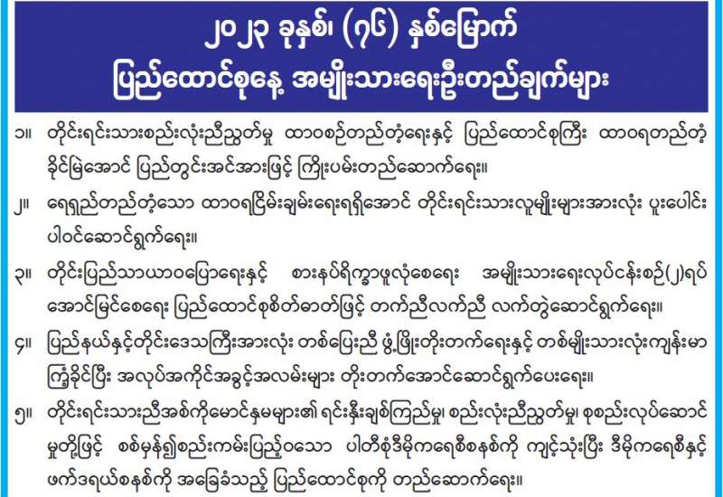 အကြမ်းဖက်အုပ်စုအဖြစ်ကြေညာထားသော CRPHI NUG နှင့် ယင်းတို့၏ လက်အောက်ခံ အဖွဲ့အစည်းများ၊ ယင်းတို့နှင့် ဆက်နွှယ်နေသော အဖွဲ့အစည်းများ၊ လူပုဂ္ဂိုလ်များသည် နိုင်ငံတော် တည်ငြိမ်အေးချမ်းရေးကို ပျက်ပြားစေရန်နှင့် ပြည်သူလူထုကို အကြောက်တရားများ ဖြစ်ပေါ်စေပြီး အစိုးရယန္တရားများ ပျက်ပြားစေရန် ရည်ရွယ်လျက် လှုံ့ဆော်ခြင်း၊ ဝါဒဖြန့်ခြင်း၊ ခြိမ်းခြောက် ခြင်းများကို လူမှုကွန်ရက်များမှတစ်ဆင့် နည်းမျိုးစုံဖြင့် ပြုလုပ်လျက်ရှိပါသည်။