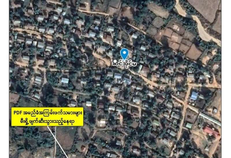 စစ်ကိုင်းတိုင်းဒေသကြီး၊ ကလေးဝမြို့နယ်၊ ဆင်အိုင်မကျေးရွာအတွင်းရှိ နေအိမ်များအား PDF အမည်ခံအကြမ်းဖက်အဖွဲ့များက အကြောင်းမဲ့မီးရှို့ဖျက်ဆီးခဲ့ကြောင်း သိရှိရသည်။