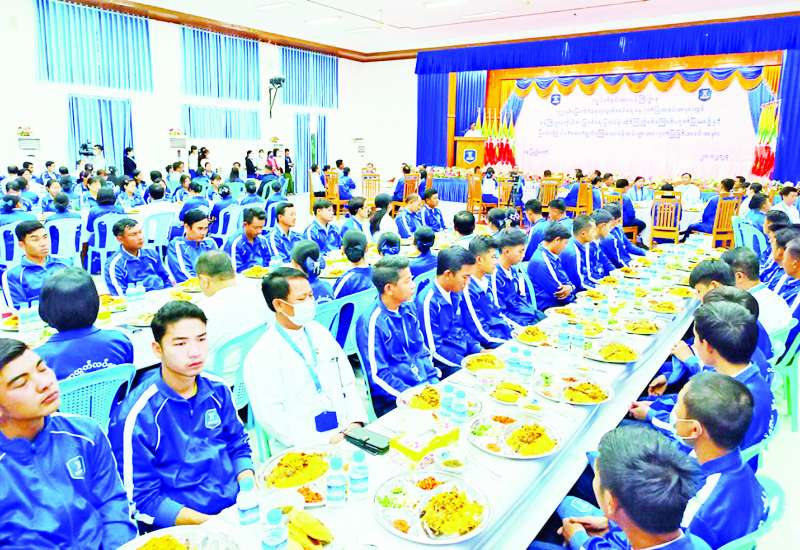(၂၀၂၃) ခုနှစ် တရုတ်နှစ်သစ်ကူးပွဲတော်အထိမ်းအမှတ် ချစ်ကြည်ရေး ဘတ်စကက်ဘောပြိုင်ပွဲ ပိတ်ပွဲနှင့် တရုတ်နှစ်သစ်ကူးပွဲတော်အခမ်းအနားကို ယနေ့ညနေပိုင်းတွင် ရန်ကုန်မြို့ရှိ အမျိုးသားအားကစားပြိုင်ပွဲရုံ (၁) သုဝဏ္ဏ၌ ကျင်းပပြုလုပ်ရာ နိုင်ငံတော်စီမံအုပ်ချုပ်ရေးကောင်စီဥက္ကဋ္ဌ နိုင်ငံတော်ဝန်ကြီးချုပ် ဗိုလ်ချုပ်မှူးကြီး မင်းအောင်လှိုင်နှင့် ဇနီးဒေါ်ကြူကြူလှတို့ တက်ရောက်ချီးမြှင့်သည်။