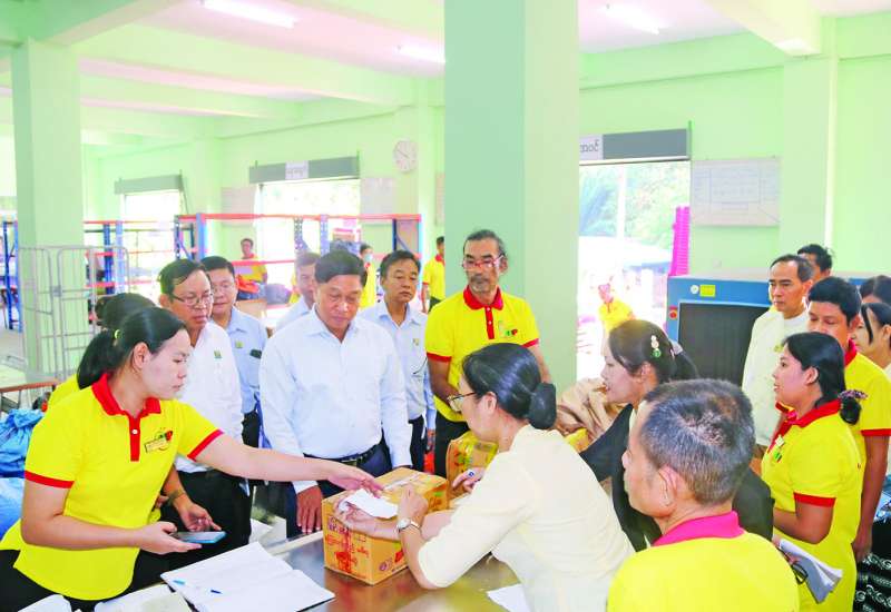 စီးပွားရေးနှင့်ကူးသန်းရောင်းဝယ်ရေးဝန်ကြီးဌာန ပြည်ထောင်စုဝန်ကြီး ဦးအောင်နိုင်ဦးသည် ယနေ့မွန်းလွဲ ၁ နာရီက ရန်ကုန်တိုင်းဒေသကြီးရုံး အဆောက်အဦတွင် မူပိုင်ခွင့်ဦးစီးဌာန၊ ရန်ကုန်တိုင်းရုံး ဖွင့်လှစ်မည့်နေရာကို လိုက်လံကြည့်ရှုစစ်ဆေးသည်။
