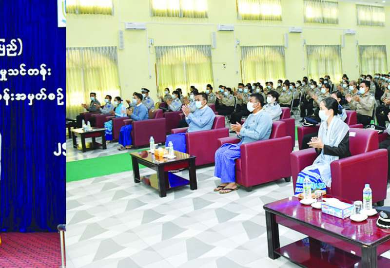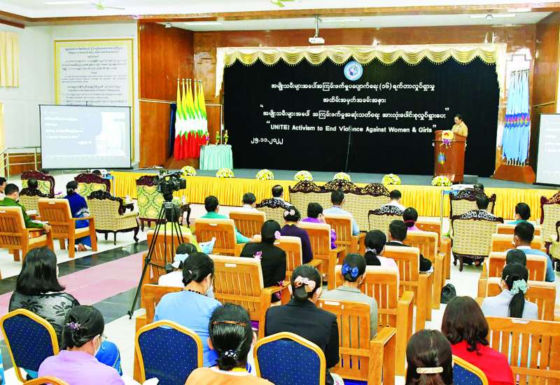 အမျိုးသမီးများအပေါ် အကြမ်းဖက်မှုပပျောက်ရေး (၁၆) ရက်တာလှုပ်ရှားမှု အထိမ်းအမှတ်အခမ်းအနားကို ယနေ့နံနက်ပိုင်းတွင် လူမှုဝန်ထမ်း၊ ကယ်ဆယ်ရေးနှင့်ပြန်လည်နေရာချထားရေးဝန်ကြီးဌာန စုပေါင်းခန်းမ၌ Hybrid ပုံစံဖြင့် ကျင်းပသည်။