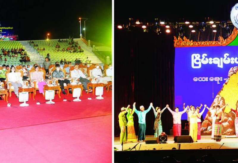 (၇၅) နှစ်မြောက် စိန်ရတုလွတ်လပ်ရေးနေ့အထိမ်းအမှတ် ပဒေသာကပွဲ အောင်မြင်စွာကျင်းပနိုင်ရေး ဝတ်စုံပြည့်အစမ်းလေ့ကျင့်မှုကို ယနေ့ညနေပိုင်းတွင် နေပြည်တော် မြို့တော်ခန်းမ လဟာပြင်ကဇာတ်ရုံ၌ ပြုလုပ်သည်။