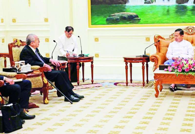 နိုင်ငံတော်စီမံအုပ်ချုပ်ရေးကောင်စီ ဒုတိယဥက္ကဋ္ဌ ဒုတိယဝန်ကြီးချုပ် ဒုတိယဗိုလ်ချုပ်မှူးကြီး စိုးဝင်းသည် ဂျပန်-မြန်မာ ချစ်ကြည်ရေးအသင်းဥက္ကဋ္ဌ Mr. Hideo Watanabe အား ယနေ့နံနက်ပိုင်းတွင် နေပြည်တော်ရှိ နိုင်ငံတော်စီမံအုပ်ချုပ်ရေးကောင်စီရုံး ဧည့်ခန်းမဆောင်၌ လက်ခံတွေ့ဆုံသည်။