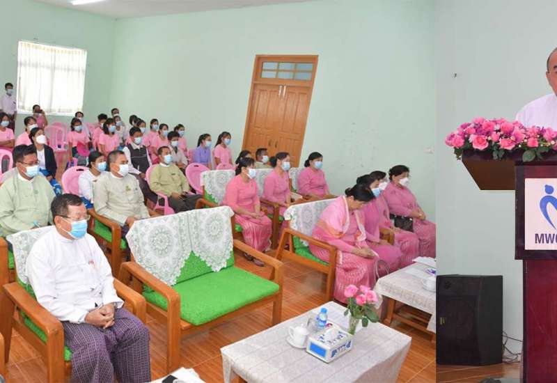 လူမှုဝန်ထမ်းဦးစီးဌာနက Quick Win Project အနေဖြင့် ဆောင်ရွက်လျက်ရှိသည့် ကိုဗစ်-၁၉ ကာလအတွင်း ကျေးလက်နေအမျိုးသမီးများအတွက် အသက်မွေးဝမ်းကျောင်းလုပ်ငန်းများ ပြန်လည်ထူထောင်ရေးစီမံချက် အကောင်အထည်ဖော်ရေးတွင် အသက်မွေးဝမ်းကျောင်းသင်တန်း ပူးပေါင်းပါဝင်ဖွင့်လှစ်သော မြန်မာနိုင်ငံအမျိုးသမီးများနှင့် ကလေးသူငယ်များဘဝ မြှင့်တင်ရေးအသင်း၏ ဝါးလက်မှုသင်တန်းဖွင့်ပွဲအခမ်းအနားကို ဥတ္တရသီရိမြို့နယ်၊ ဇဝနနေ့က လေးထိန်းကျောင်းခန်းမ၌ ကျင်းပသည်။