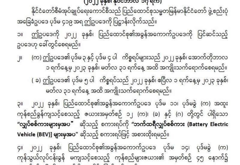 ၂၀၂၂ ခုနှစ်၊ ပြည်ထောင်စု၏အခွန်အကောက်ဥပဒေကိုပြင်ဆင်သည့်ဥပဒေ (နိုင်ငံတော်စီမံအုပ်ချုပ်ရေးကောင်စီဥပဒေအမှတ် ၄၈ / ၂၀၂၂)